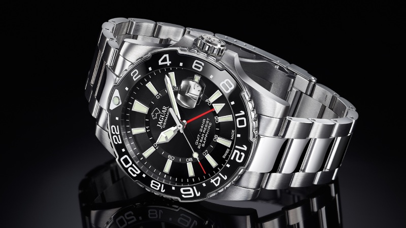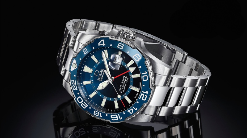 Ninguna colección de relojes, sea del estatus que sea, está completa sin al menos un reloj con función GMT. El modelo que nos presenta Jaguar se presenta como la síntesis de todo lo bueno de este tipo de relojes. En el exterior, tenemos una caja de acero inoxidable de 44mm que alberga un mecanismo swiss made de función GMT. La escala horaria de este tipo de relojes se decora en combinaciones bicolores en el bisel de cerámica y las agujas se acentúan a contraste, para poder leer mejor esos dos husos horarios. Como función adicional, este modelo presenta una ventana de fecha aumentada y un brazalete de acero a juego.