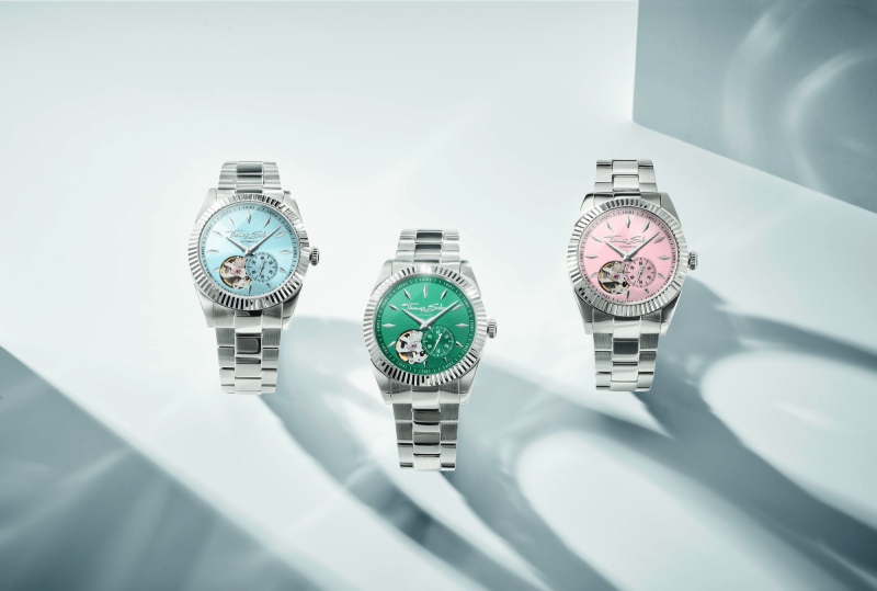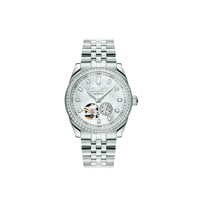 La colección de relojes Thomas Sabo abre con 2 modelos de edición de aniversario. El primero viene con una caja de acero de 41mm, bisel liso y cristal open back. La esfera esqueletada nos permite ver el mecanismo automático Miyota 8N40 con función horaria con segundos independientes. Rematando el look, tenemos indicadores en dorado y un brazalete con grabados típicos de la marca. Y en el lado más delicado, tenemos una versión de 37mm que replica el mismo look, pero con un aire más delicado. Y en vez de ser esqueletado, su dial se remata en nácar blanco con indicadores de brillantes.