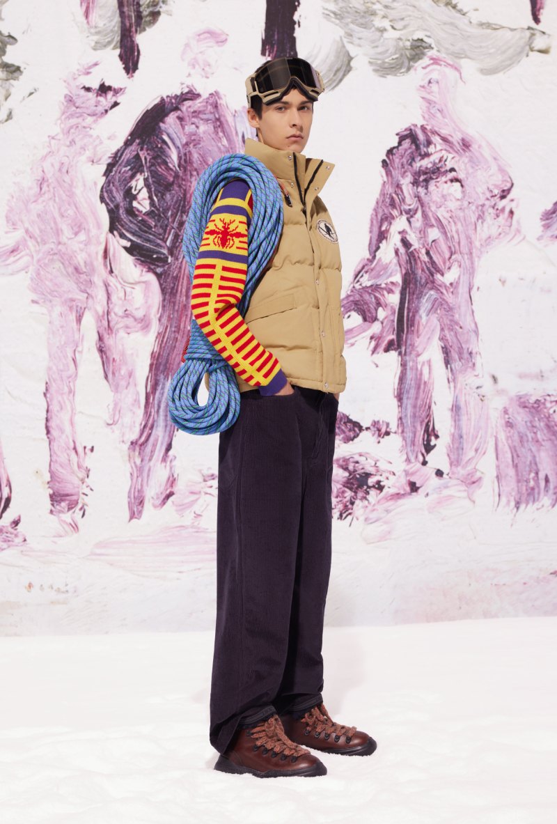 En líneas generales, esta nueva entrega de ropa de esquí de Dior se aleja de paletas de colores habituales de las colecciones masculinas. En su lugar, nos encontramos con una composición de tonos tierra combinados con colores más vivos y chillones, fruto de esa mirada nostálgica a décadas pasadas. Sin embargo, se siente tan Dior como de costumbre gracias a ese lenguaje de sofisticación de high street que Jones trabaja tan bien.