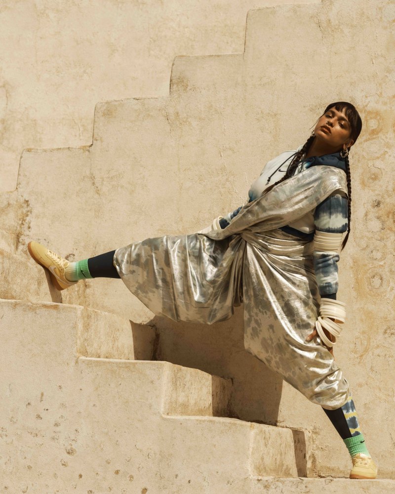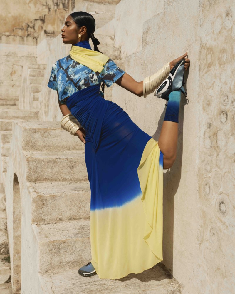 En el core de su trabajo encontramos la técnica tradicional del bandhani, que emula un look tie-dye, pero tiene un acabado mucho más orgánico y sutil. Esto también es el foco central de su cápsula Nike X NorBlack NorWhite, que enriquece los arquetipos occidentales del sportswear con nuevas sensibilidades.