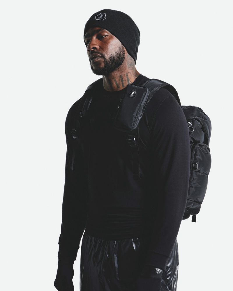 Jugando en el mismo terreno, Puma X Skepta presentan también un chaleco técnico y utilitario. Pero ahora, en aras del refinamiento de este uniforme, los bolsillos se han ocultado para lograr un look mucho más minimalista y pulido. En la misma línea de funcionalidad urbana, tenemos también una mochila de gran formato y acabado puffy, construido con el mismo nylon de alto brillo. Y, para cerrar el look de driller, tenemos un beanie de punto y guantes con puños reforzados.