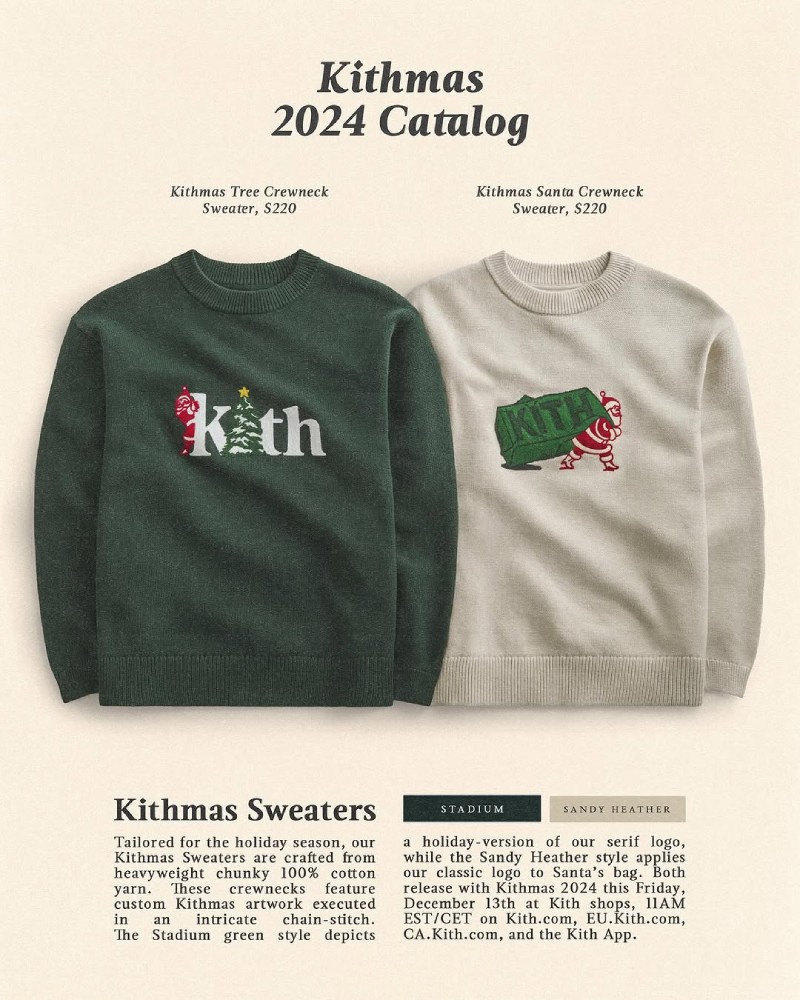 Para Kithmas 2024 ha decidido presentar su range de ropa y accesorios a manera de catálogo de compra retro; de esos que te daban en los grandes almacenes cuando eras pequeño. Y así, nos logra dar una visión entera de lo que veremos en su colección a través de varios drops a lo largo de todo diciembre. Y, por lo que podemos ver, se vienen muchas cosas.