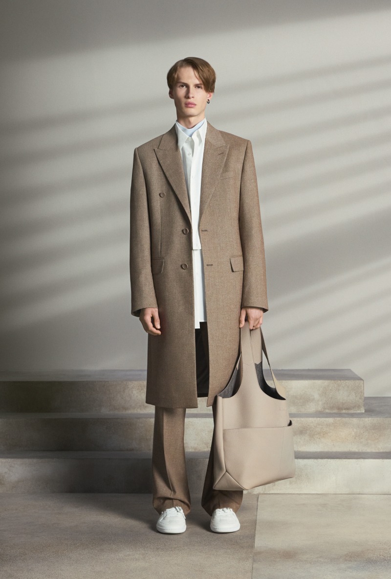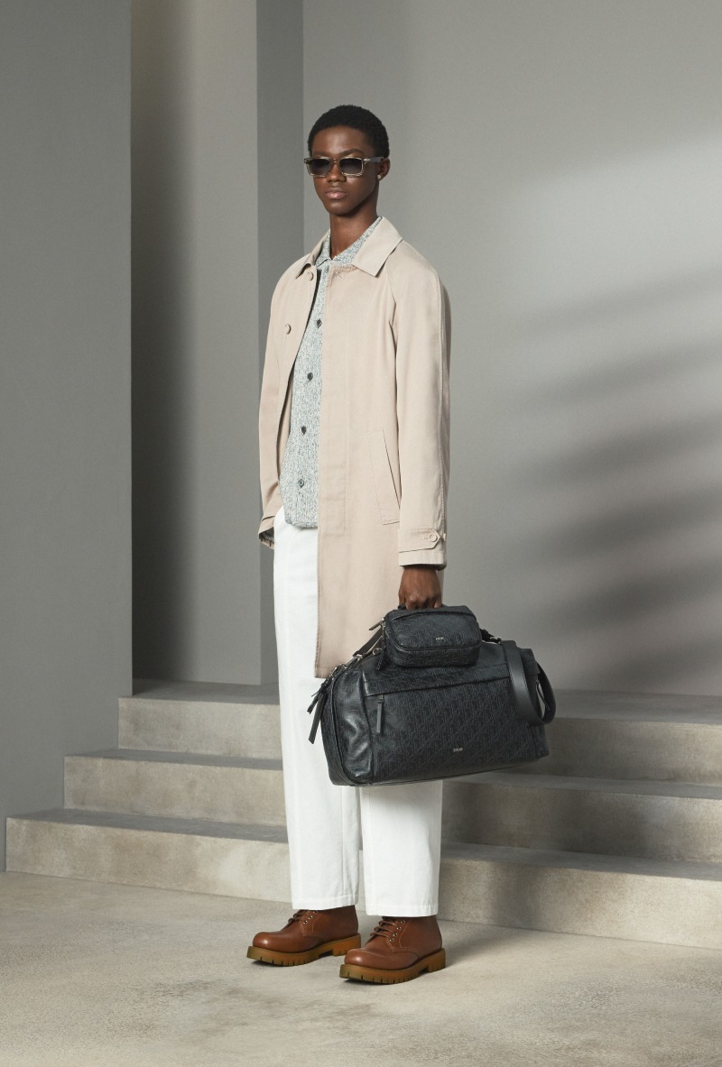 Y claro, lo mejor de Dior Men Fall 2025 para el final. La colección de bolsos que acompañan a estos looks se compone de siluetas altamente funcionales y minimalistas en piel; y todas se pintan en una paleta súper neutral. Este catálogo de piel ofrece todo lo que podemos necesitar en un día en la ciudad con siluetas arquetípicas: camera bags, totes, duffles, sobres, riñoneras. También, vemos reinventada la tendencia de los maxi bolsos para hombre, con siluetas sobre el hombro cargadas de bolsillos extra.