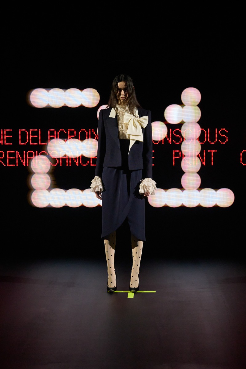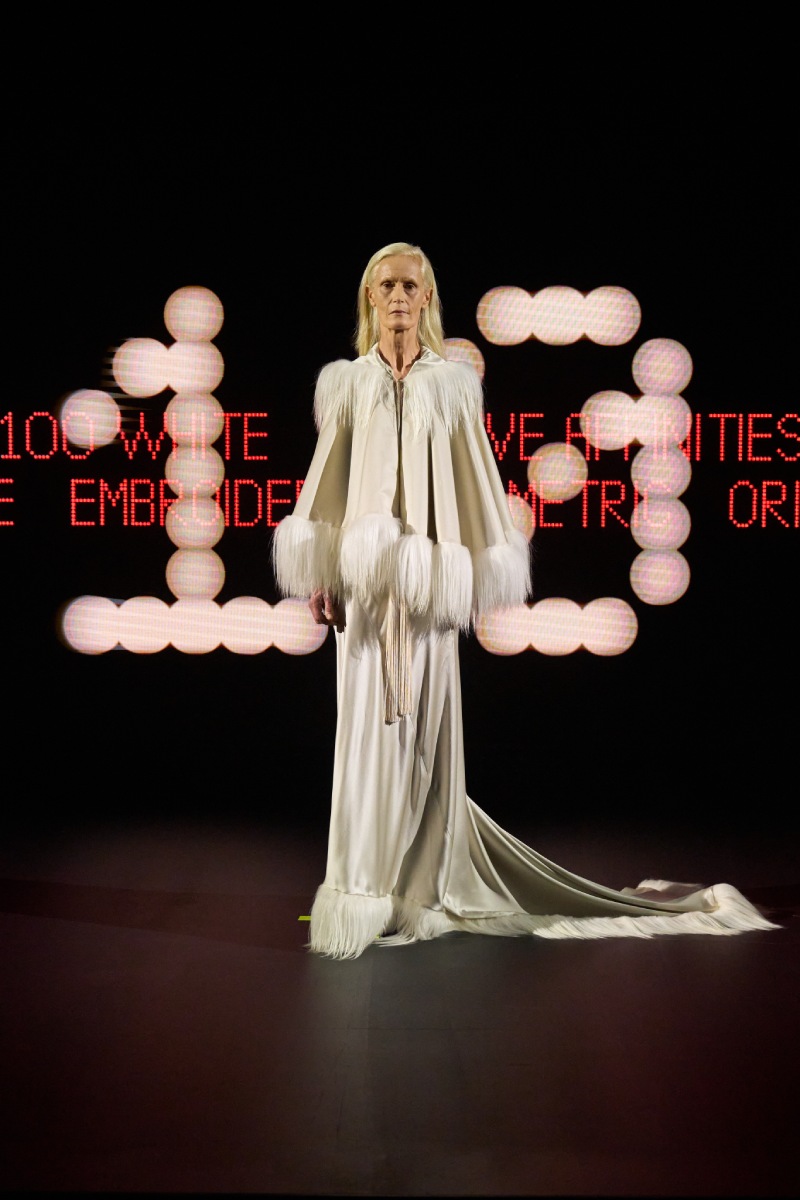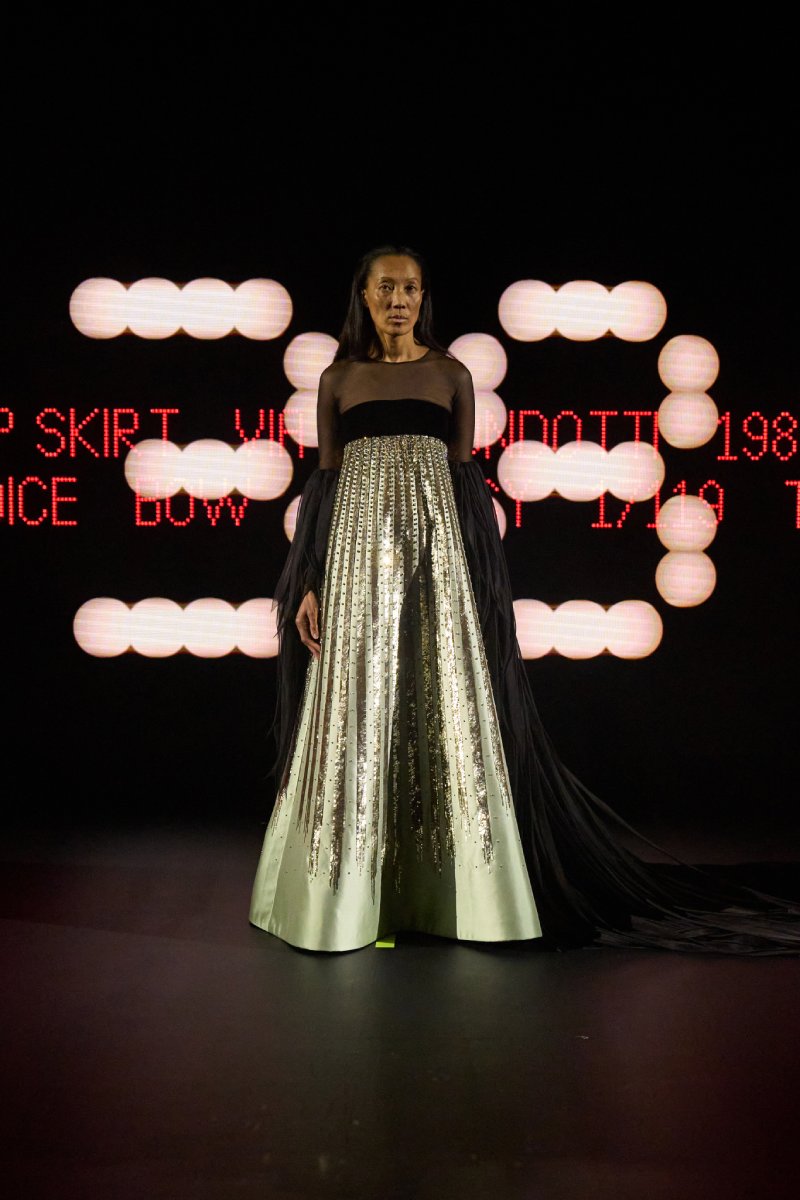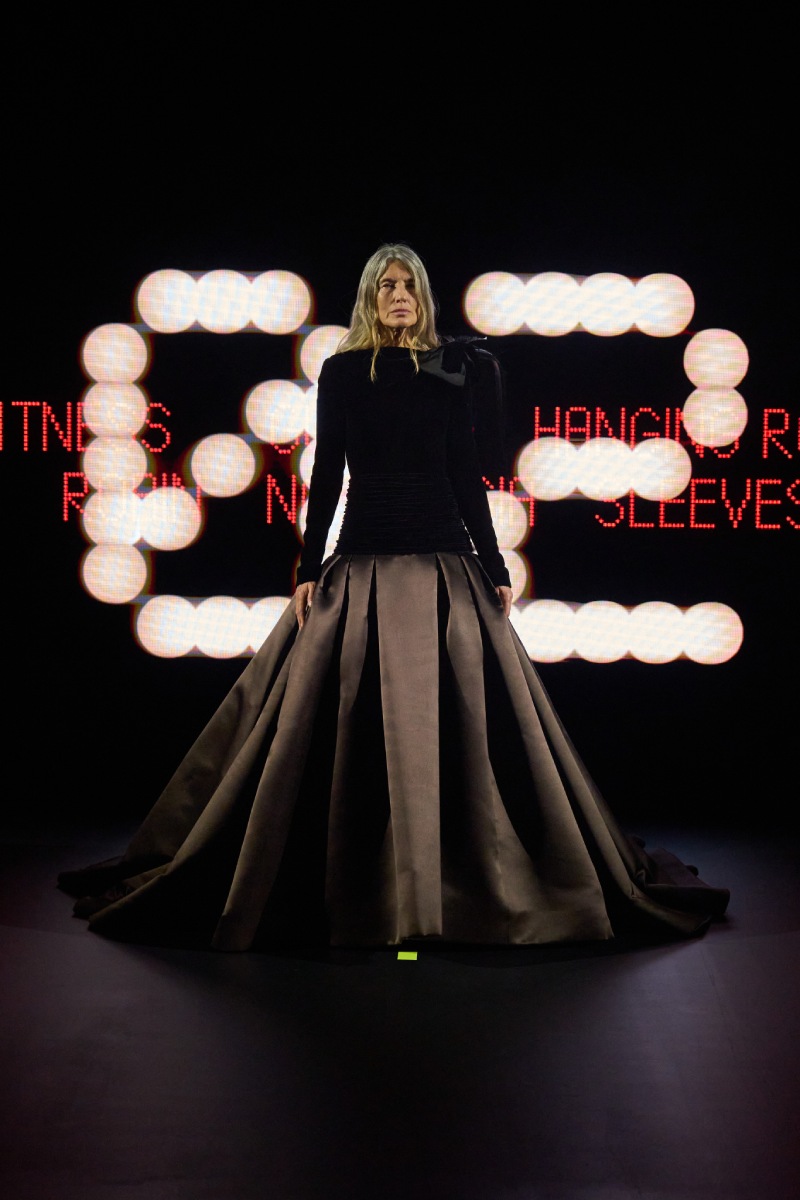 Y ahora, para Valentino Alta Costura 2025, Michele decide reunir todas las fuentes de inspiración que nutren su lenguaje en una sola entrega. Para ello, y referenciando a grandes pensadores, toma la función de la lista; tanto en su función organizativa como estética. El repertorio completo es una lista de todo lo que le inspira; y cada look es una lista también en sí misma. Esta es la síntesis más completa y exhaustiva del universo Michele; y no deja nada sin explorar.