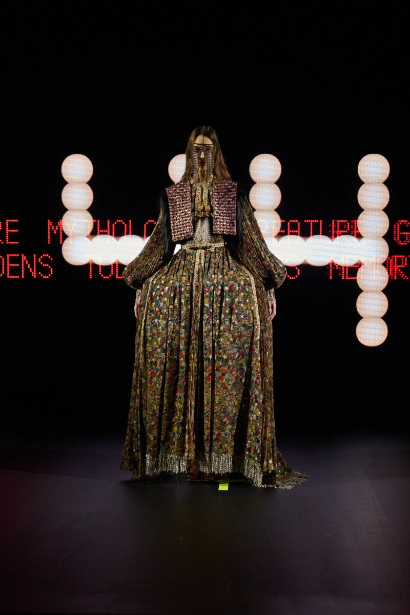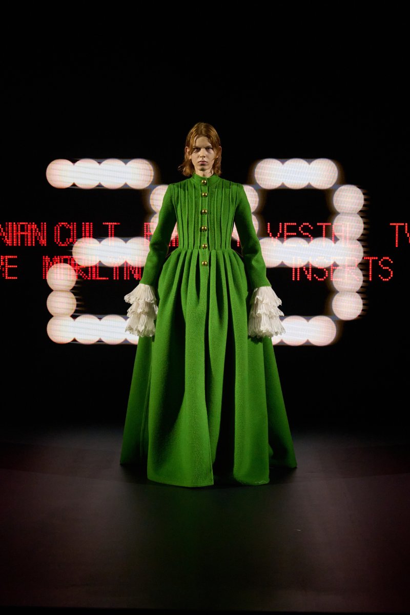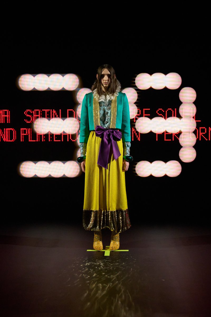 Definir el estilo y el lenguaje de diseño de Alessandro Michele es una tarea imposible. Sus fuentes de inspiración vienen de todos los rincones de la cultura y el tiempo; y juntas, crean una amalgama visualmente teatral y romántica que es ya una propia corriente de estilo. Claro, hay tropes predominantes de los 70 y el renacimiento… pero es una cosa muy suya.