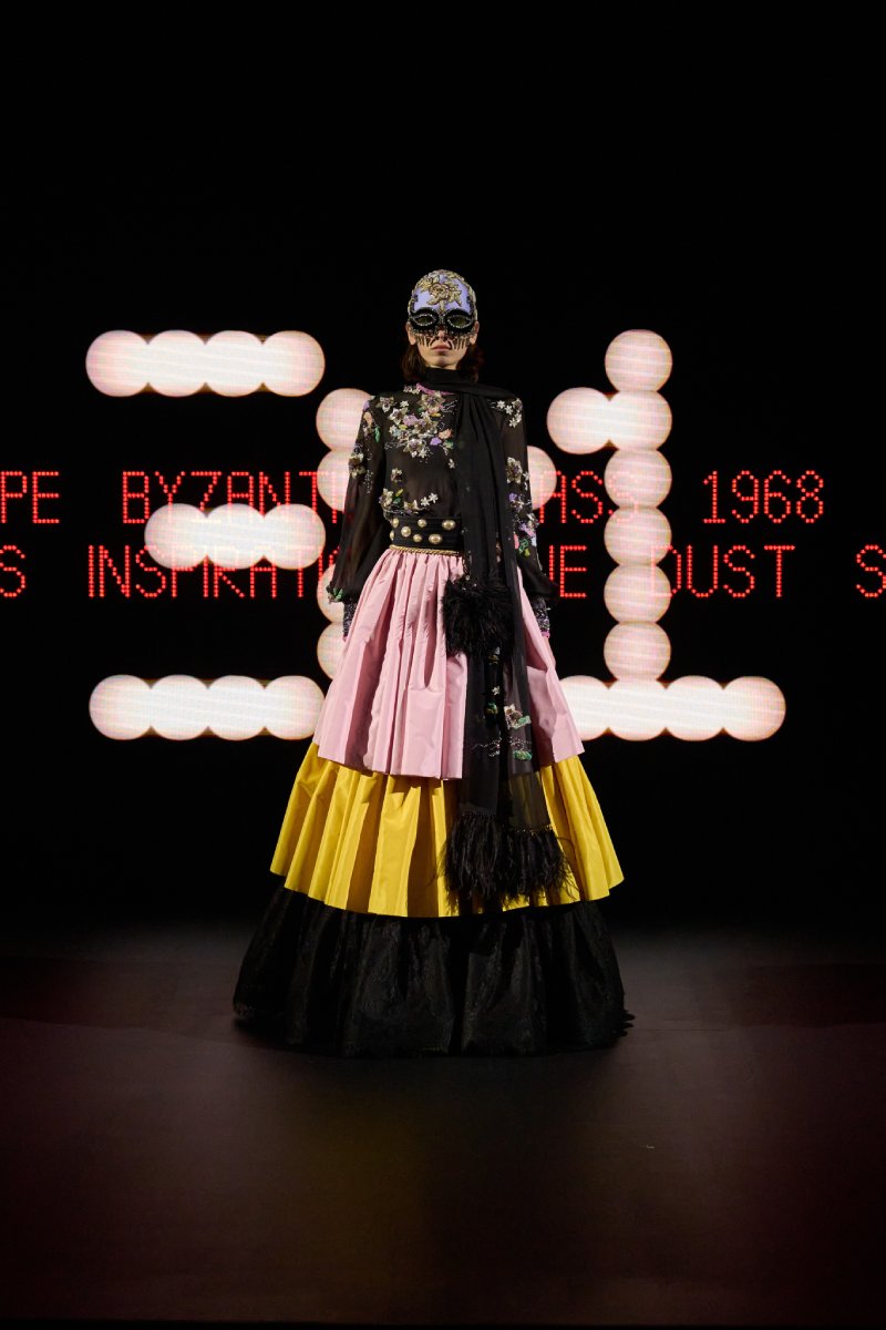 La primera colección Valentino Alta Costura de Michele es la expresión más liberada y espectacular de su lenguaje ecléctico. Para este debut, el creativo toma la figura de la lista (tanto funcional como literaria) para amasar universos enteros de referencias e inspiraciones, creando una colección que es de todo menos comedida.
