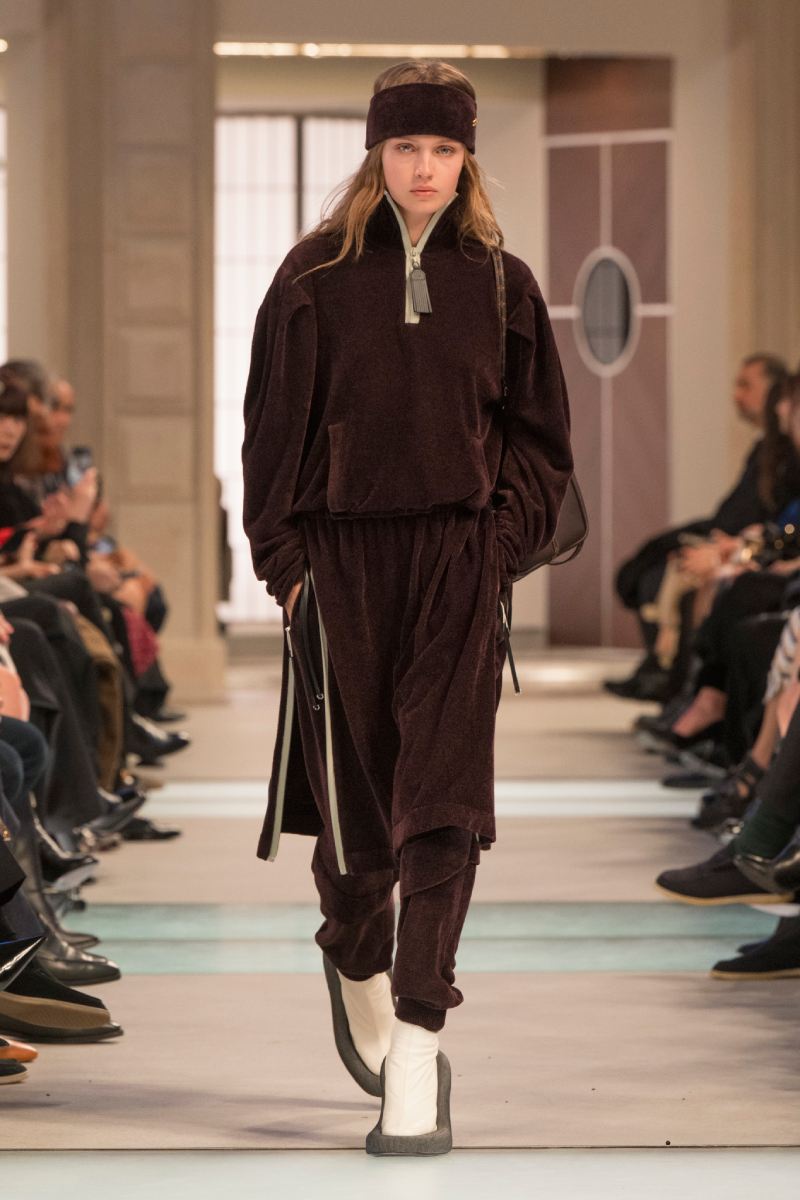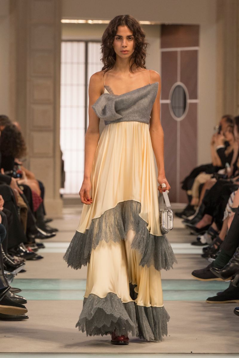 Por ejemplo, Louis Vuitton fw25 comienza con un repertorio de looks modernos y técnicos al más puro estilo de Ghesquière; con parkas funcionales en nylon o Pvc sobre prendas de womenswear ultra elegante y volúmenes que rozan el avant-garde. En una nota completamente diferente, tenemos luego abrigos de pelo y vestidos con volantes escultóricos. Hay un poco de todo, pero mola. También salen a relucir vestidos vaporosos con estampados florales y trajes de chándal en velour con construcciones más complejas.