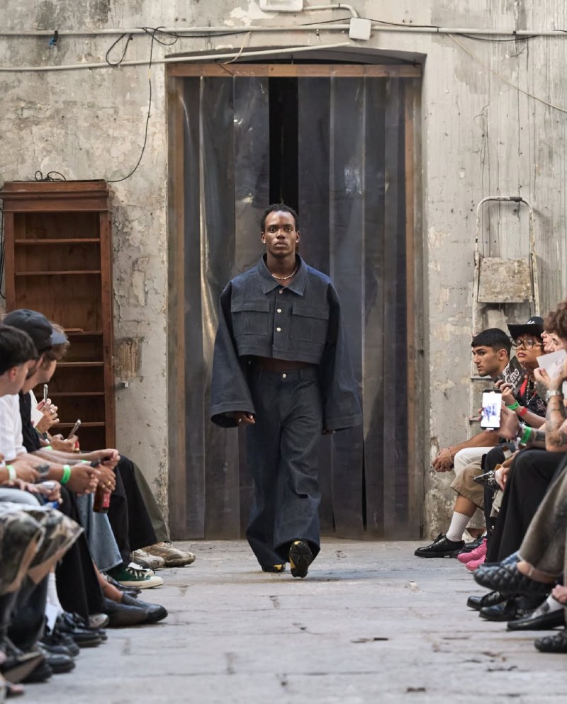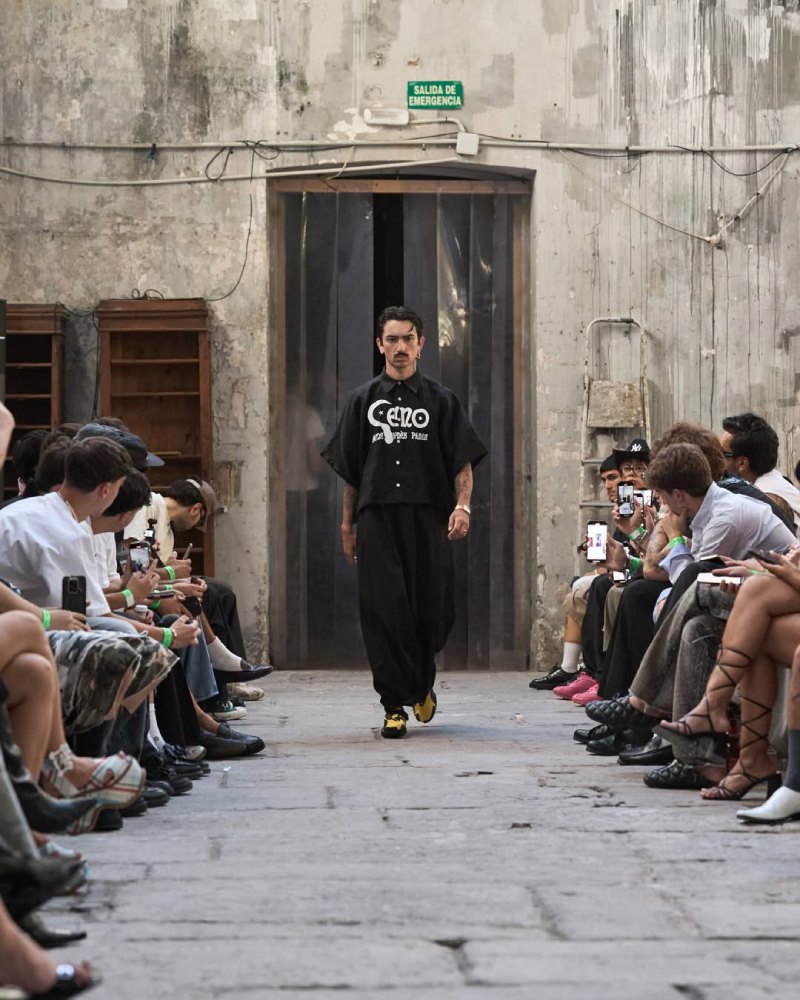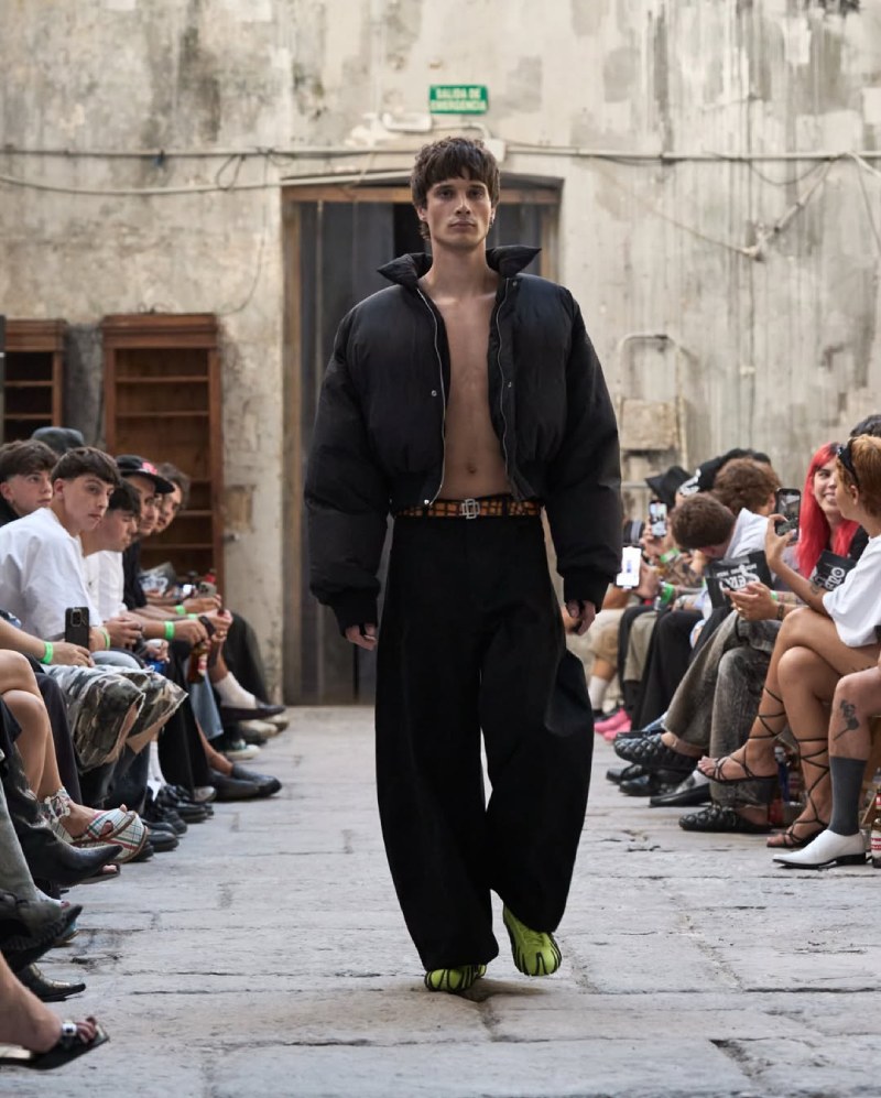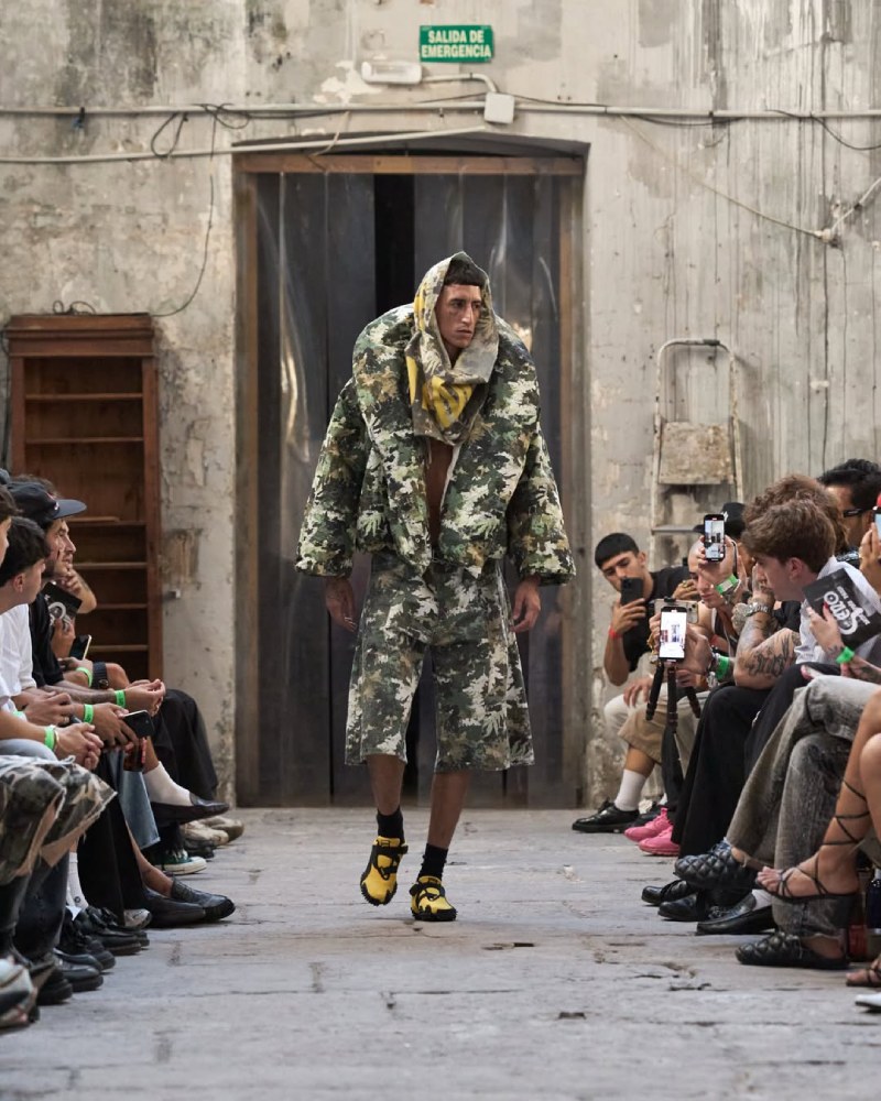 A parte de la cápsula de Dame Après Paris X Puma, la firma también presentó un armario en solitario bastante significativo para su historia y evolución. Geno redobla en las raíces obreras y gallegas de la firma como punto de inflexión; eso sí: a través de tropes que ya se han asentado como la identidad de la firma. Este nuevo armario abre con un mono de trabajo oversize, rematado en lona que sintetiza a la perfección el theme. Seguidamente, salen a relucir camisas de botones cropped y oversize sobre camis de manga larga; sobre jorts de corte ultra baggy, por supuesto.