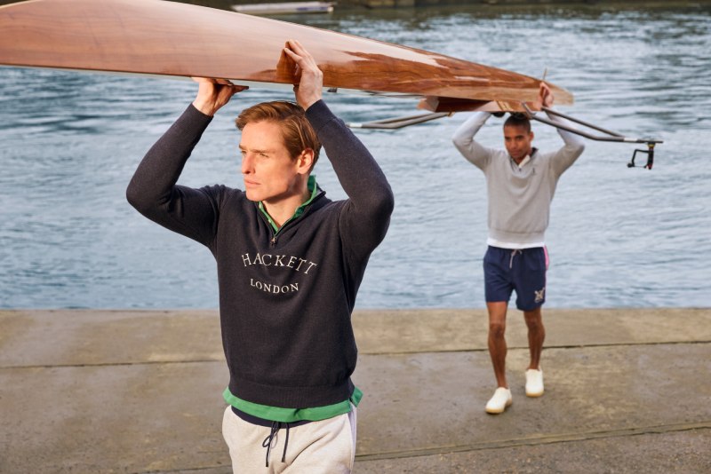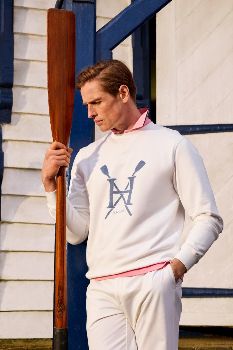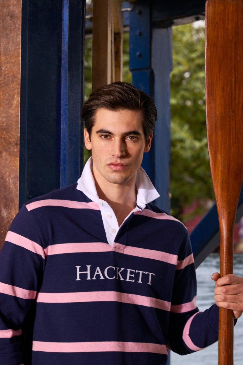 Cuando hablamos de looks de estilo varsity clásico, nos podemos referir a casi cualquier tipo de indumentaria concebida por los estudiantes. El enfoque de Hackett Heritage mira a los uniformes deportivos de sus equipos. Es por esto que vemos guiños al remo, al rugby, al críquet y al polo entre las prendas esenciales. Y sí, todo es un espectáculo.