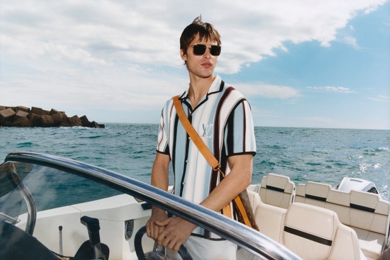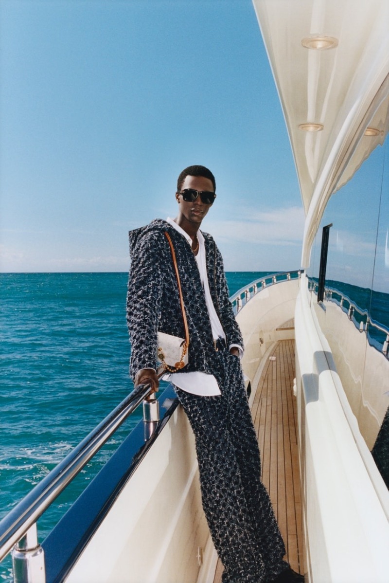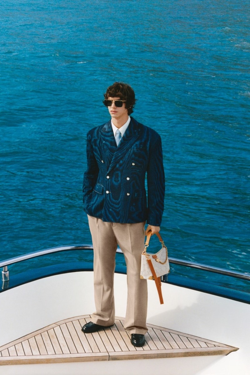 Arrival, por su parte, muestra un lado más street y desenfadado del estilo marinero en Pre-Fall 2025. Aquí, vemos parkas tecncias de nylon decorarse con nuevas variantes del Monogram y formar total looks con bermudas. También tenemos las versiones mas sofisticadas de las típicas chaquetas universitarias de la maison; trajes de aire workwear y conjuntos de ganchillo a rayas. Como total look estrella, la colección tiene un set de chándal rematado en Monogram flocado. Y, en cuanto a los accesorios, tenemos a las estrellas de siempre en nuevas versiones de inspiración marítima y atemporal.