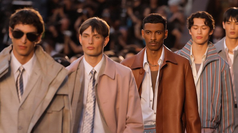 El theme de la sastrería no se muestra solo en conjuntos literales de americana y pantalón de pinzas; también hay reinvenciones de este asunto. Por ejemplo, la colección de Louis Vuitton Mens ss26 muestra un anorak hecho a partir de lana de traje; reemplaza la americana por una bomber de piel espectacular; un puffer de raya diplomática. Y bueno, también se explora el arquetipo literal a través de tejidos con mucha más dimensión, acabados más casuales, construcciones más ligeras. E, incluso, se hace un mix and match bastante interesante con otros esenciales de lo casual.