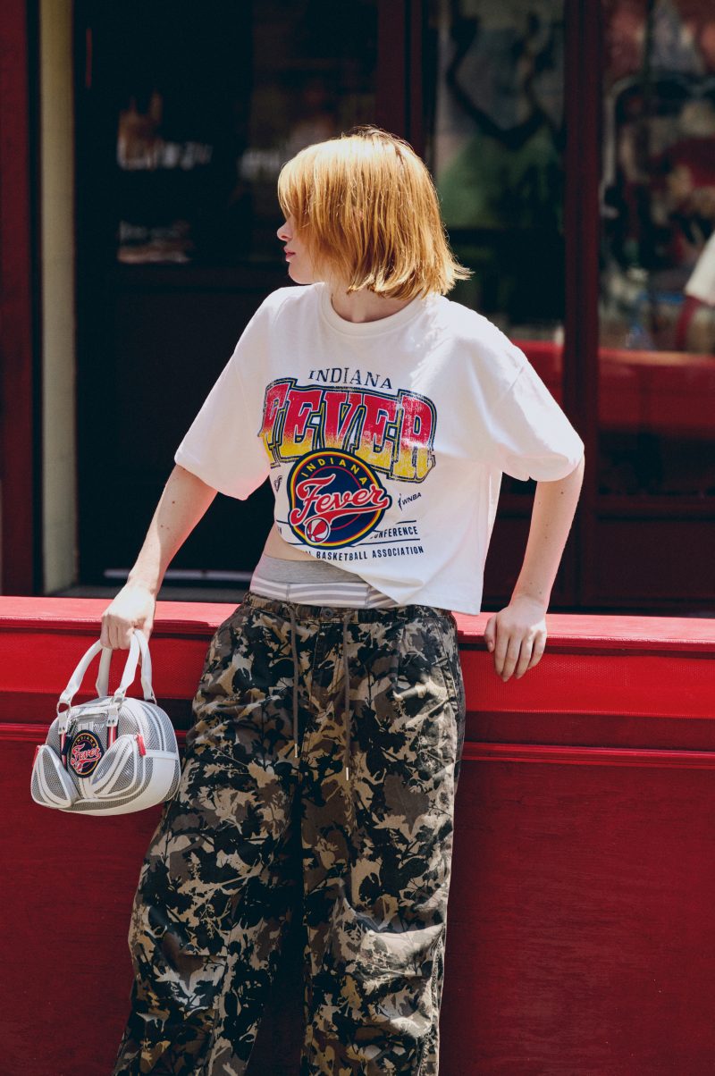 La cápsula de Bershka X Wnba, a primeras, no tiene demasiada complicación. Entre este repertorio de esenciales deportivo-street encontramos una serie de tops bastante interesantes; y todos con un aire retro súper trendy. Por ejemplo, tenemos uno de hombros caídos con los logos del Chicago Sky; o uno con lazadas laterales del mismo team. También hay bodys retros de las Las Vegas Aces y una cami estilo souvenir de Indiana Fever.