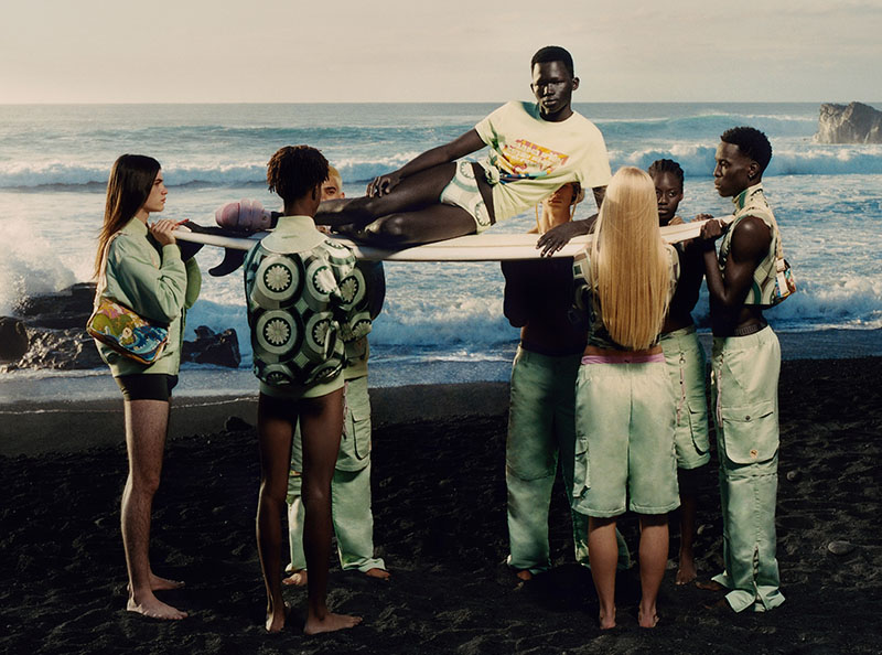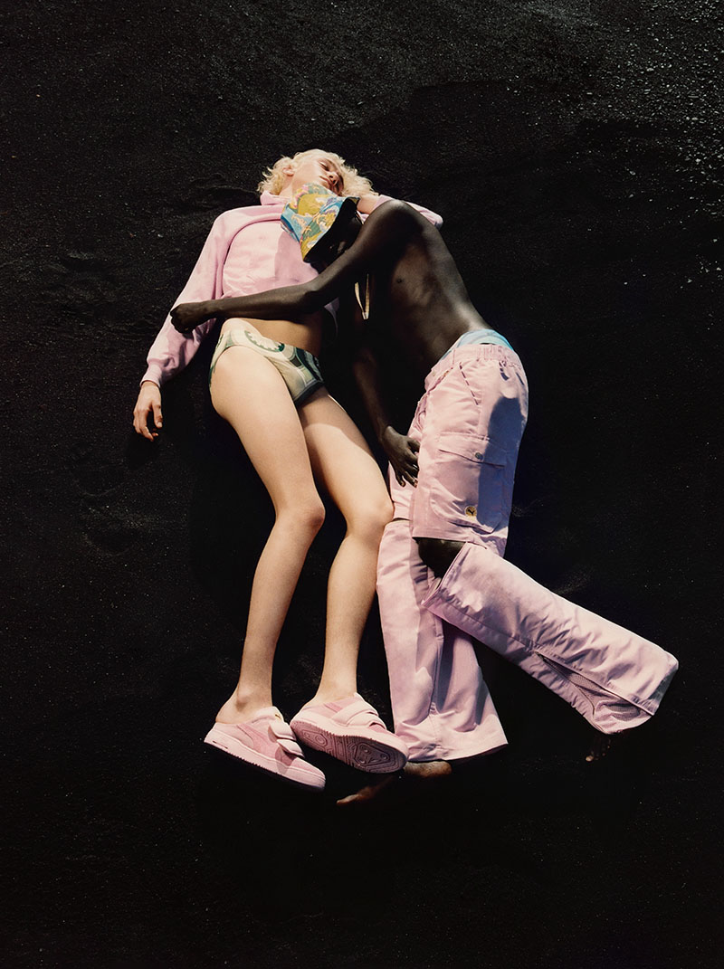 La nueva colección Puma X Palomo también incorpora mucho del lenguaje autorreferencial del diseñador español; según comenta, “Una temática surfera era perfecta para el verano, y nos remitió inmediatamente a iconos de la cultura… también a nuestros propios recuerdos adolescentes de las playas de Tarifa a principios de la década de 2000, y al look de chico surfero que tanto predominaba en España por aquel entonces.”