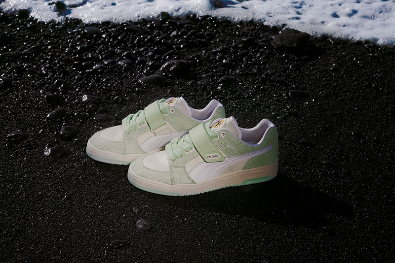 También tenemos algo para completar nuestros looks de playa. La nueva colección Puma X Palomo ofrece dos versiones de la zapatilla Slipstream; la primera es una iteración de ante en blanco y verde agua muy neutra y la segunda es una versión mule hecha en rosa chicle con dos correas de velcro.
