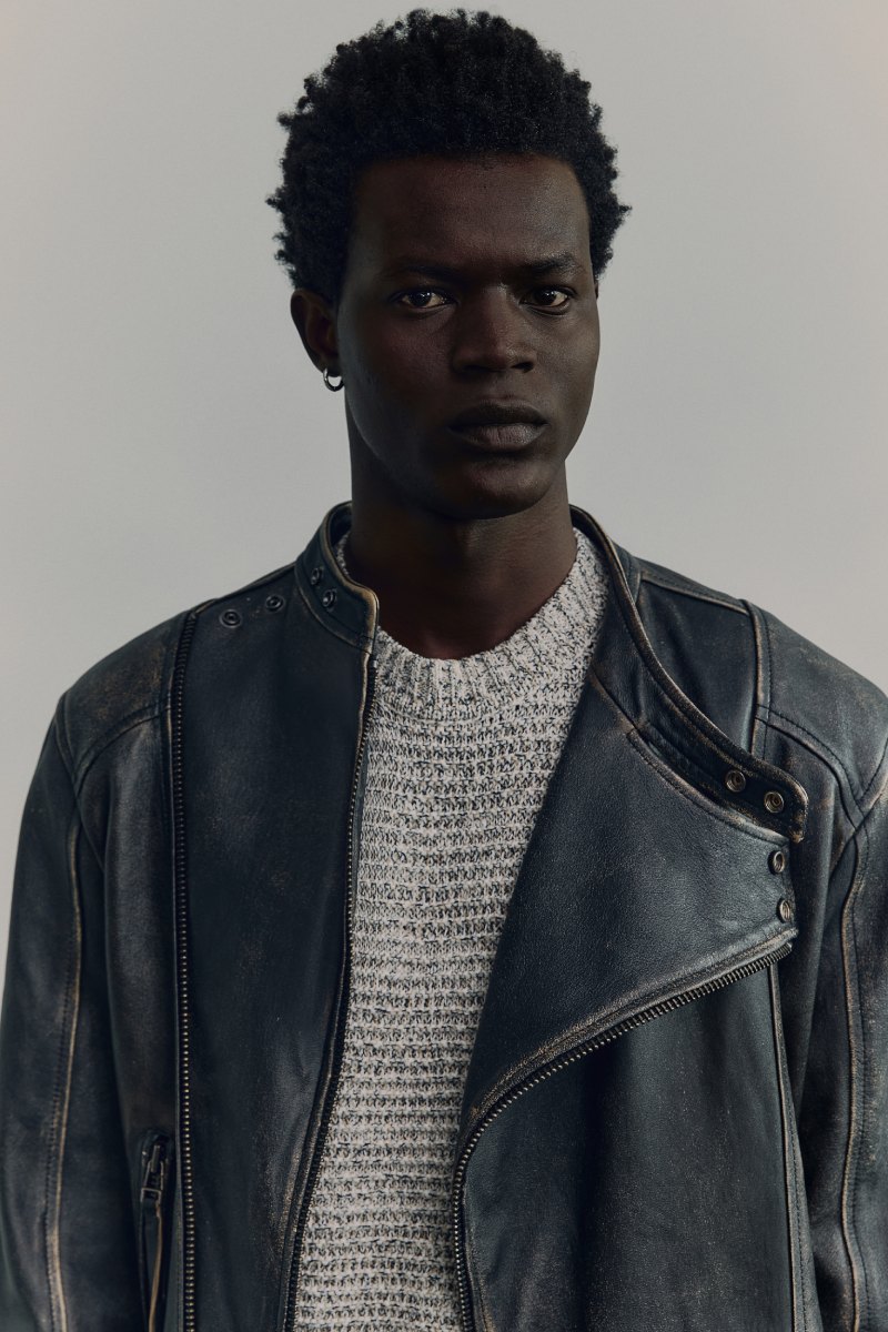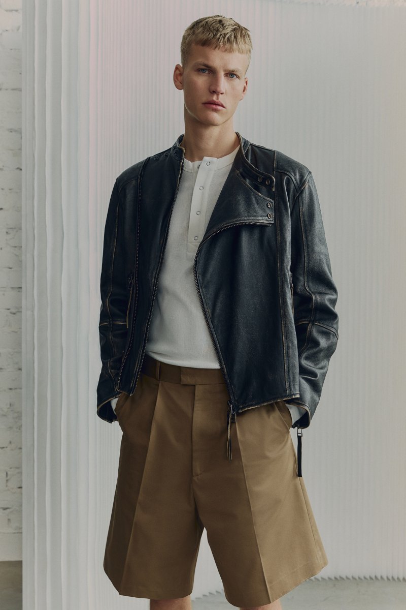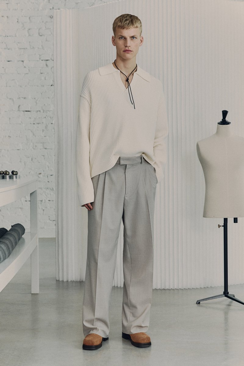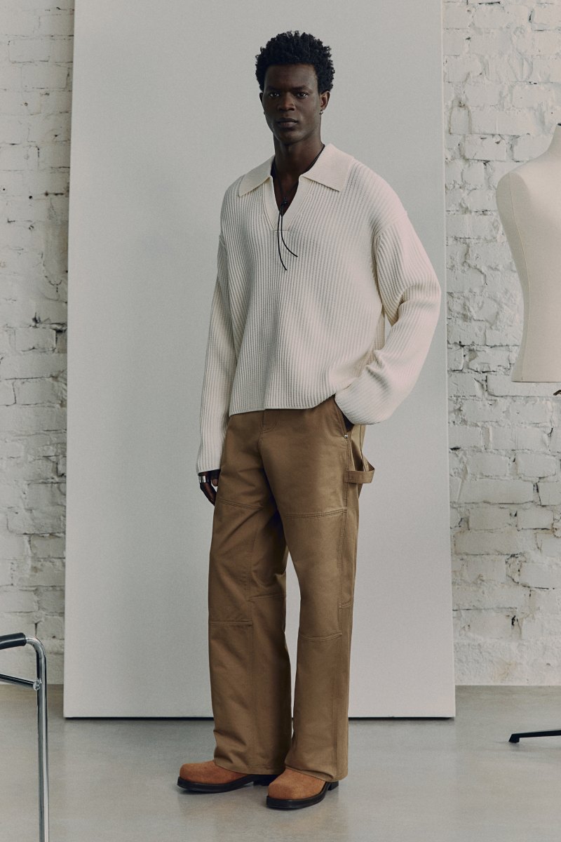 Otra de las estrellas de H&M Atelier SS25 es su cazadora biker en piel. Esta, de corte café racer, se deconstruye con una disposición asimétrica y se envejece, para suspenderla en el tiempo como el epítome de lo cool. En esa misma línea de aire casual, vemos conjuntos denim y henleys como las capas primordiales de los mejores looks casuales. El punto también es uno de los platos fuertes, y lo podemos ver en los jerséis de cuello polo que hacen de mejores puntos de acento en la colección.