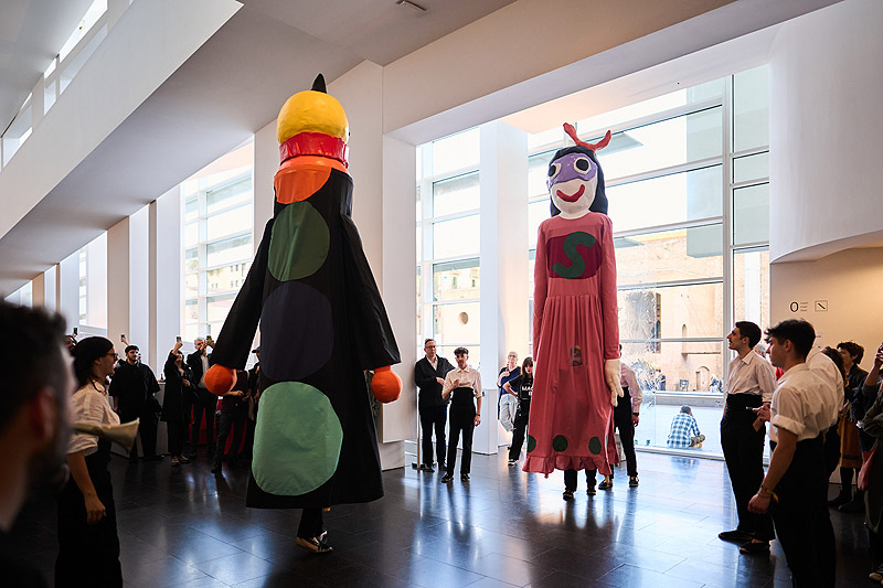 En esta performance, Colomer utiliza a dos gigantas, realizadas por Eudald Ferré, para cuestionar la relación entre arquitectura y poder a través de una ficcionalización del uso del balcón como discurso político. Más información y horarios en este enlace.