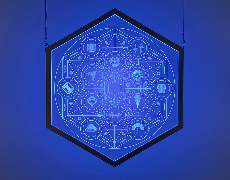 La obra “Dat – Astral Chart” conecta lo tecnológico con lo esotérico, jugando con la idea de la minería de datos y la futurología. Noemi Iglesias