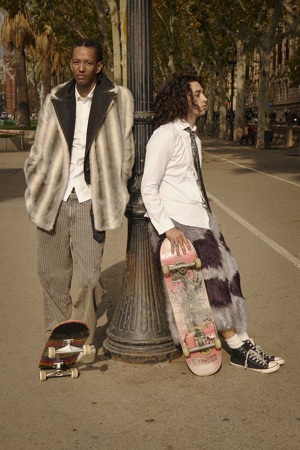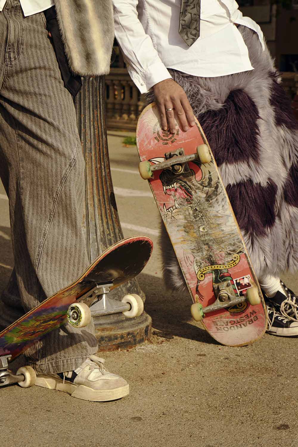 Sons of the City nos sumerge en un universo donde el movimiento y la expresión personal se funden en una danza urbana. Los skaters, lejos de ser simples deportistas, se transforman en iconos de estilo, combinando prendas high fashion con elementos propios de la cultura skate. Las imágenes, llenas de energía y vitalidad, nos transportan a un mundo donde la creatividad no tiene límites. Cada look es una declaración de intenciones, una invitación a romper con las normas establecidas y a encontrar la propia identidad. La nueva generación de skaters nos demuestra que la moda va más allá de las tendencias. Es una forma de expresarse, de conectar con los demás y de dejar huella en el mundo. Y es que, ¿quién dijo que el skateboarding y la elegancia eran incompatibles?