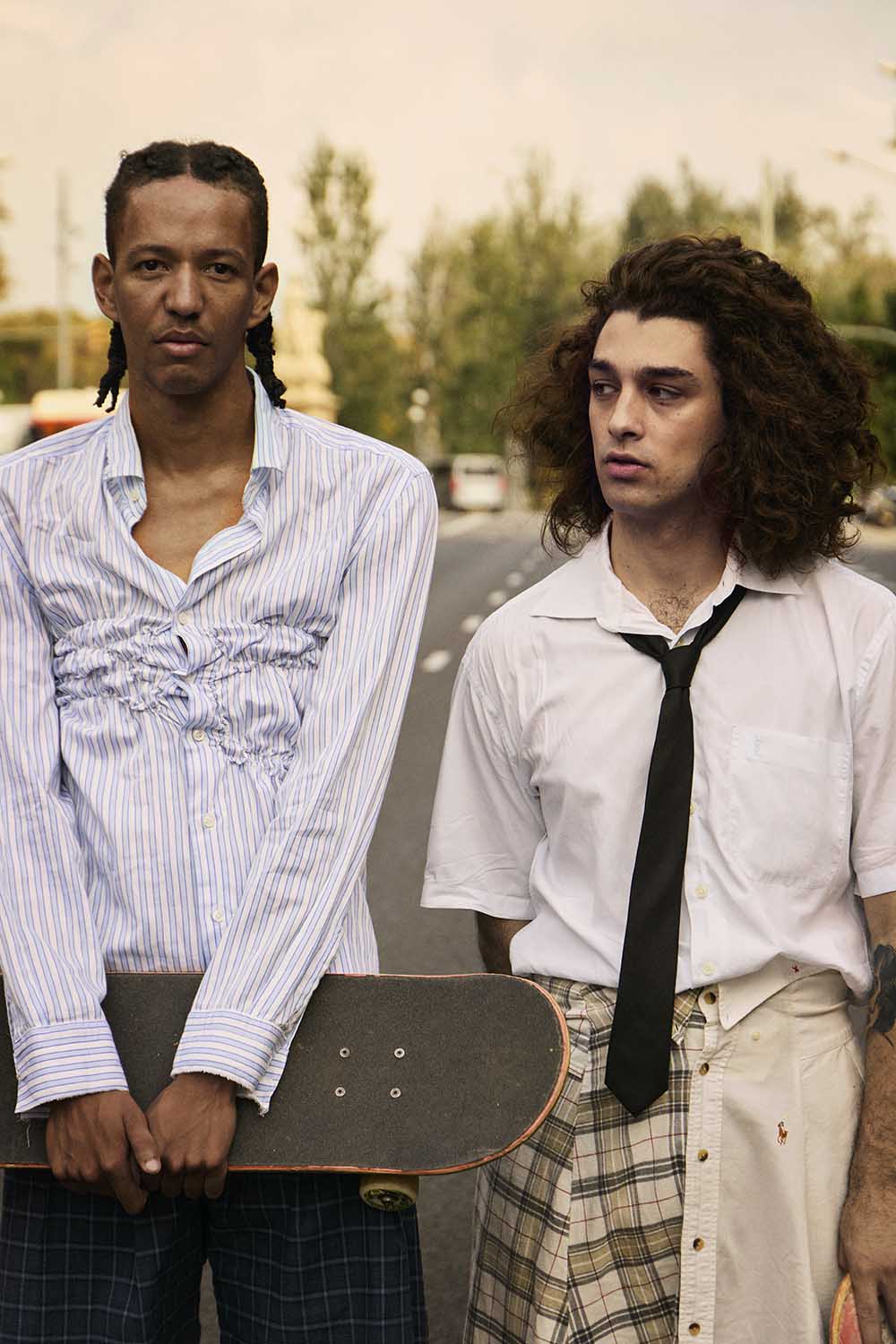La ciudad se convierte en una pasarela donde el skateboarding y la moda se fusionan. Los skaters, lejos de los clichés, imponen una nueva estética urbana. En el editorial Sons of the City, capturado por la lente de Ángela Ibáñez Pérez y estilismo de Cala Xiang, te presentamos a una nueva generación de skaters que desafía los límites de la moda urbana.