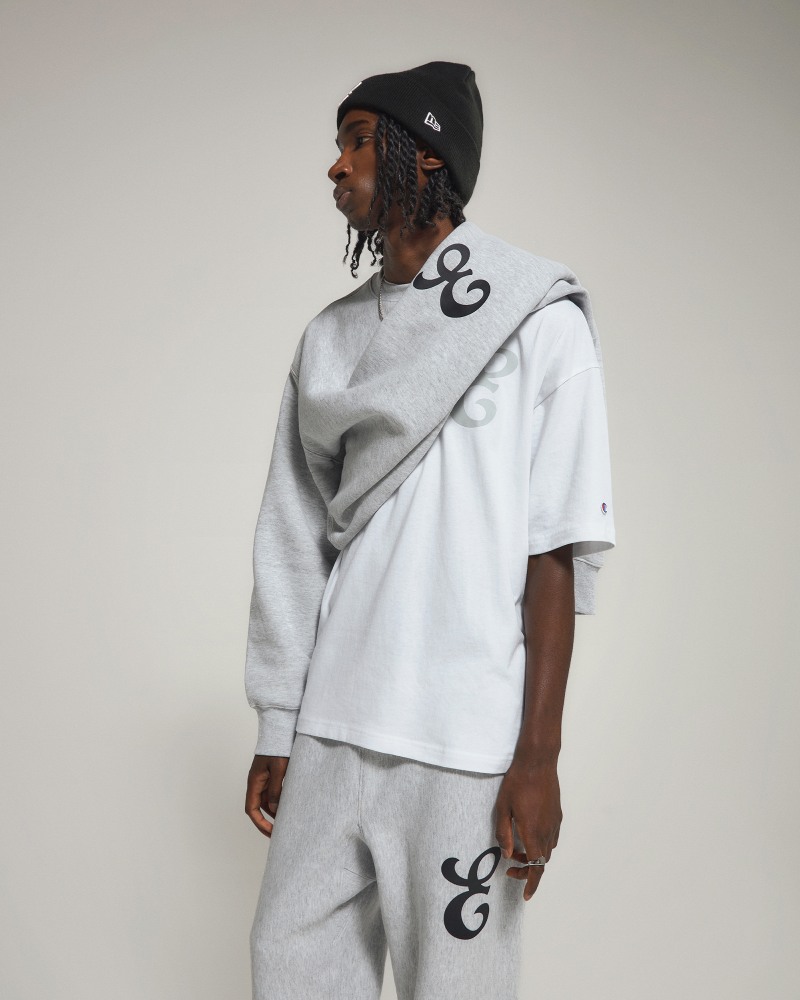 Como alternativa más comfy, E by END. une fuerzas también con el titán del chándal para los mejores esenciales. La colabo de Champion X END. presenta sudaderas (con o sin capucha), pantalones de chándal y camisetas básicas en opciones de gris jaspeado y negro con un logo E en cada prenda.