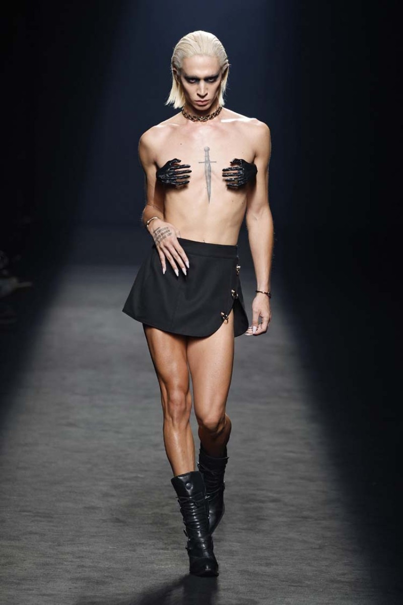 Una jaula, un artista polifacético y objetos como arañas gigantes. Así es la nueva moda en MBFW Madrid de Álvaro Calafat. Un desfile que será difícil de olvidar porque fue una auténtica declaración de intenciones desde el principio hasta el final. Esta acción con rebeldía y fuerza, Álvaro Calafat la hizo en directo. El diseñador malagueño estuvo en directo cantando canciones compuestas por él, y algunas icónicas. ¡Una locura visual!