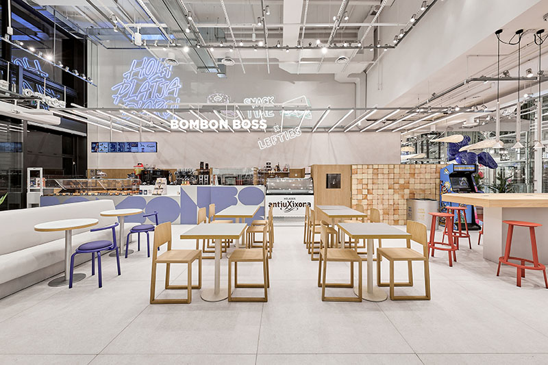 Hasta ahora la nueva tienda suena de maravilla, pero es que hay más. A parte de ser solo un punto de venta de ropa, esta nueva tienda incorpora en su interior diversos espacios y zonas dedicadas que la convierten en algo mucho más elevado. Por ejemplo, la Zona Chill de la tienda se dispone para que recarguemos baterías (la de nuestros móviles y las nuestras). También, y si nos pica el diente por algo dulce, hay una Zona Fini con chuches. La Lefties Digital Store Platja D’Aro también ofrece a sus visitantes una cafetería inmensa, la Bombón Boss X Lefties, para pillar un snack y descansar un poco. La tienda cuenta también con máquinas recreativas, un tobogán que une sus dos plantas y una cabina de música… ¿qué más podemos pedir?