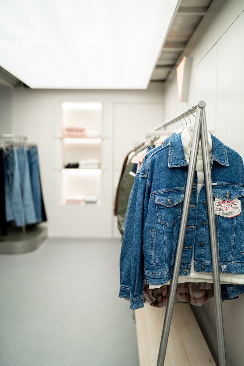 La tienda pop-up de Guess Jeans pone como foco principal su colección FW24, que incluye los fits masculinos como el G18 Relaxed, el G16 Straight, el G14 Slim y el G12 Skinny. También, estrena nuevas prendas exteriores como la cazadora Selvedge Denim Workwear y la cazadora Oversized Sherpa. En cuanto a la ropa de mujer, se presenta el G11 Wide Leg (junto a los fits clásicos: G05 Skinny, G06 Mom y G08 Mid-Rise Straight) y una gama de chaquetas, entre las que se incluye un nuevo diseño de cazadora oversized.