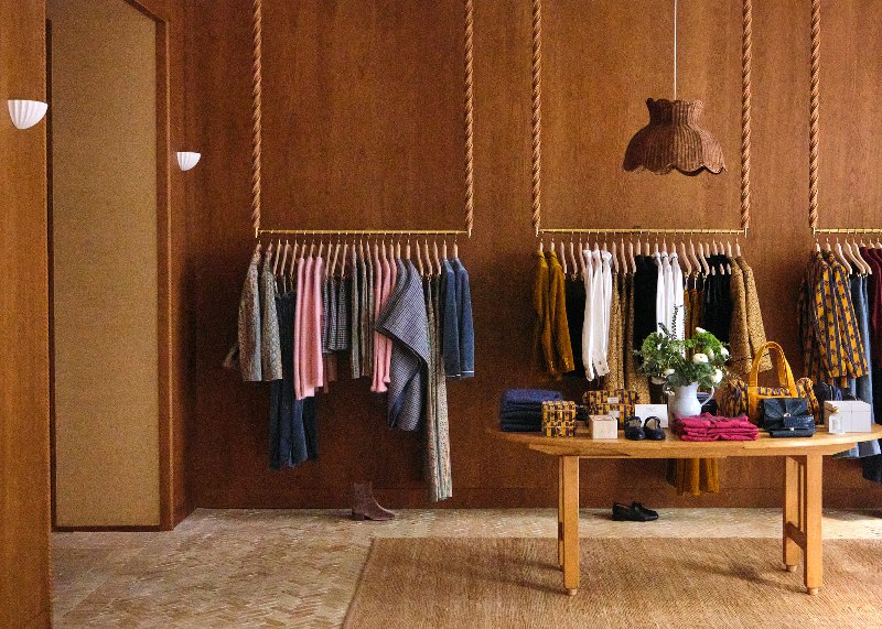 Interior de la tienda de Sézane, ubicada en el barrio de Salamanca.