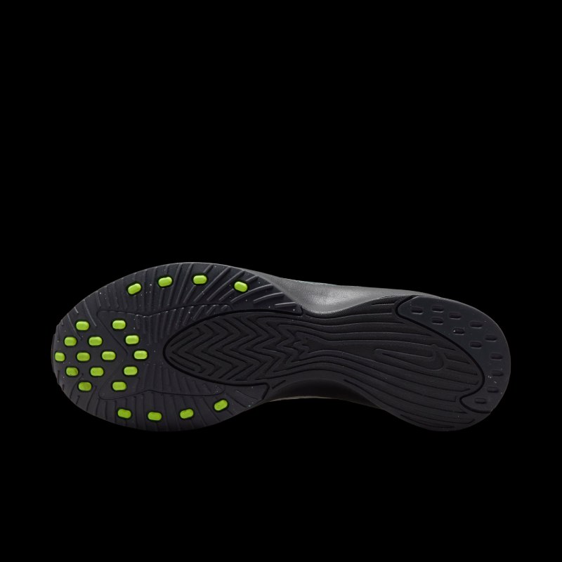 Debajo de la construcción metálica, las Nike Air Superfly destacan una mediasuela de goma negra, para no desentonar el look. Internamente, esta construcción presenta una cámara de aire oculta en el talón, envuelta y asegurada por espuma CushIon de última generación. Y, como guiño a su propósito original, la suela se decora con detalles en verde donde iban los tacos en el modelo og.
