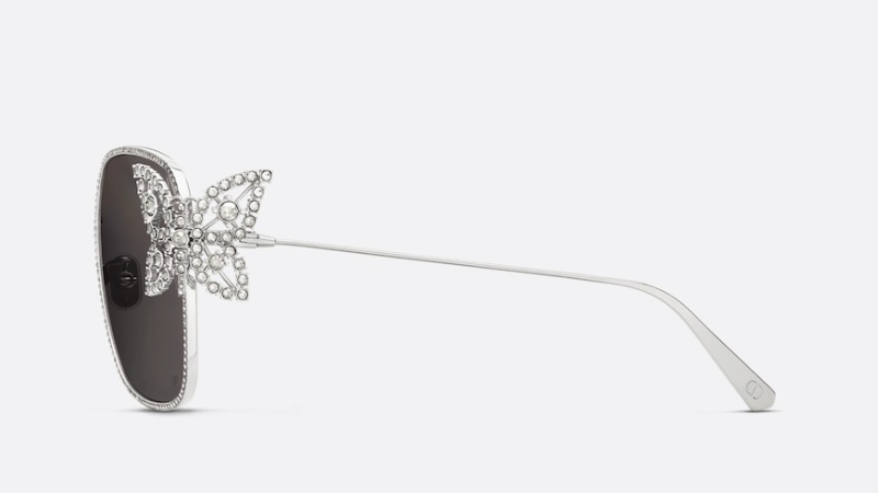 Las nuevas gafas DiorFantastica presentan un marco metálico con acabado de paladio. Sus cristales, de formato cuadrado y de inspiración militar de los 60, se presentan en un tinte gris atemporal. El toque wow se lo da su intervención brillante. A lo largo del marco nos encontramos una serie de cristales de Swarovski engastados que resaltan la silueta. Y la pièce de résistance: una construcción de mariposas en las varillas, también engastada con cristales. Estos apliques envolventes cubren gran parte de los cristales y de las bisagras, creando un punto de acento espectacular.