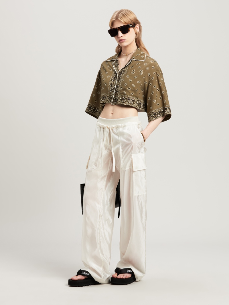 Y para sujetar esta construcción tan minimalista (y aún así atrevida), tenemos un lower de plataforma chunky hecho de elastodiene (un tipo de espuma). Sobre esta base, nos encontramos una plantilla decorada con el monograma de Palm Angels y para rematarlo todo, una suela acanalada con patrones ondulados.