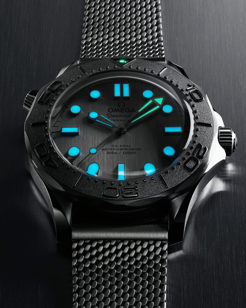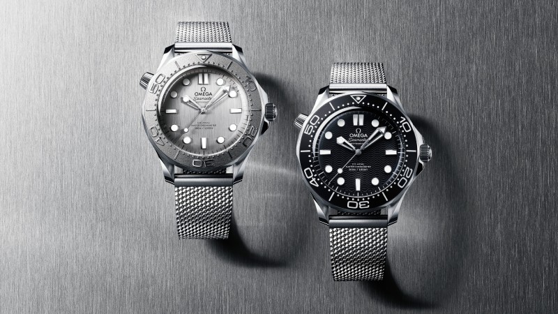 Pues de esta relación es que deriva la nueva colección de los Omega Seamaster Diver 300M. Más concretamente de las dos últimas entregas de Daniel Craig. En estas dos películas, Spectre y No Time to Die, Bond llevaba un Seamaster muy característico de caja de titanio y elementos en “marrón tropical” que referenciaban a estos antiguos modelos militares. Ahora, el modelo convencional toma ese aire retro y lo reimagina con un toque más futurista de metal puro y también con versiones con detalles negros.