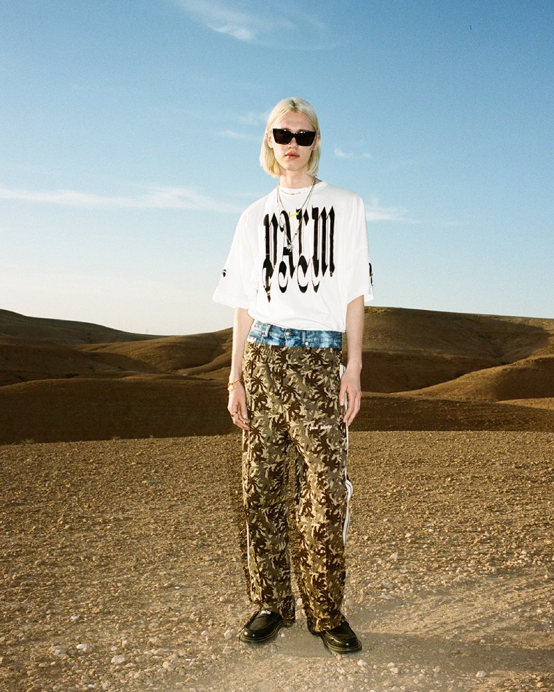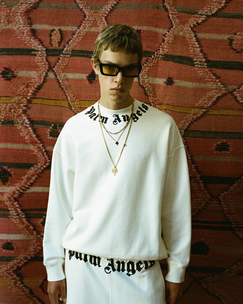 Pues, en verdad, Palm Angels juega en un terreno entre estas dos posibilidades. La firma de Francesco Ragazzi se ganó un lugar en el spotlight de todos gracias a sus icónicos trajes de chándal de estética retro, que siguen siendo una de las mejores formas de indicar un gusto un tanto más elevado. Pero también, su logo de tipografía gótica estampado en cualquier cosa les ha llevado a donde están.