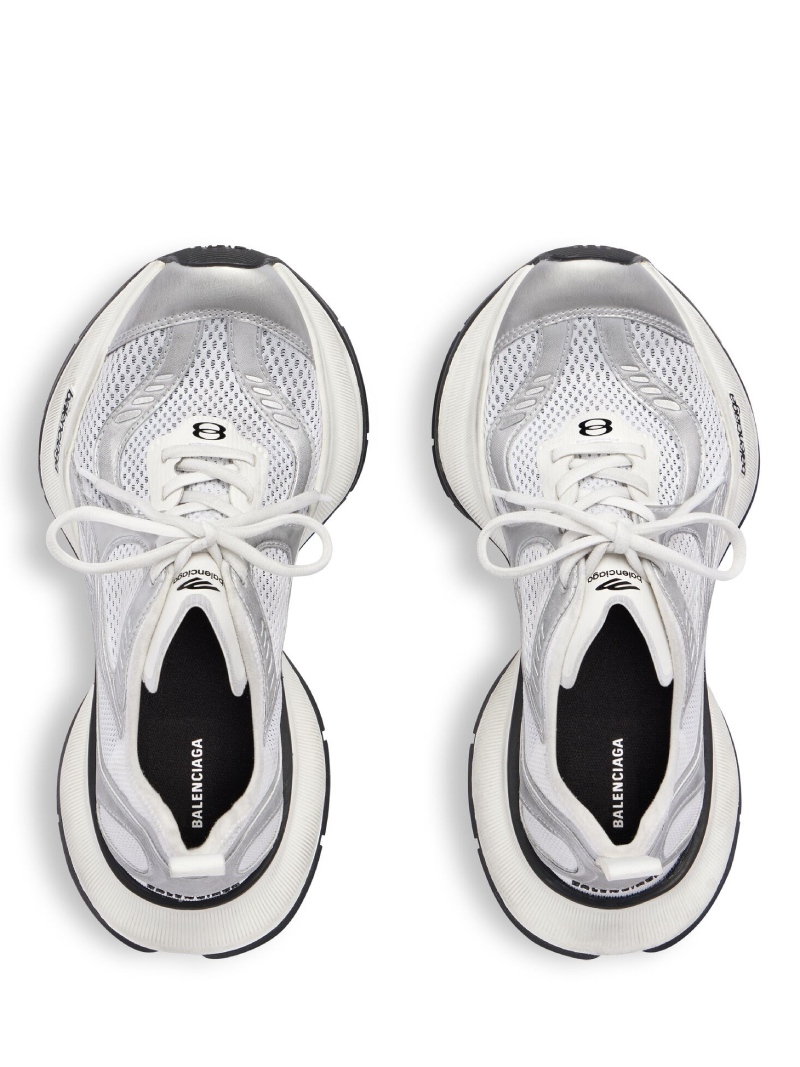 Pero claro, la silueta es lo más importante. El cuerpo superior presenta una línea mucho más pulida y streamlined en forma de balancín que se ensancha en la parte delantera (ojo, solo se puede apreciar desde arriba). Y claro, las suelas de las zapatillas Balenciaga Circuit también hacen lo suyo. Esta construcción de goma ensancha el perfil deportivo de este estilo de sneakers tanto en el talón como en la puntera a proporciones arquitectónicas. Y como de costumbre, la suela trepa al upper sobre la puntera y deja ver la talla de la zapatilla. Todo se remata con otro logo de inspiración sport a un lado de la mediasuela.