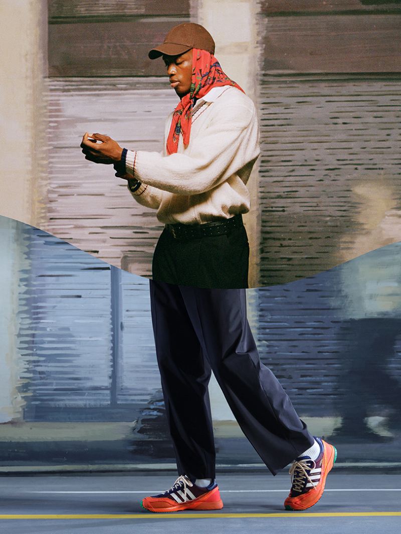 En teoría, su nueva silueta es en realidad un híbrido entre dos. Esta nueva colaboración mira a grandes momentos de la historia de adidas como fuente de inspiración. Cronológicamente, tenemos primero a las SL 72, una silueta creada ad hoc para las olimpiadas de Munich pensadas para la pista. Eso es lo que tenemos en la mitad superior. Y debajo, Benito mira a los 2000 con las Adizero Adios, una silueta hecha para que Haile Gebrselassie compitiese en el maratón de Berlín (2008).