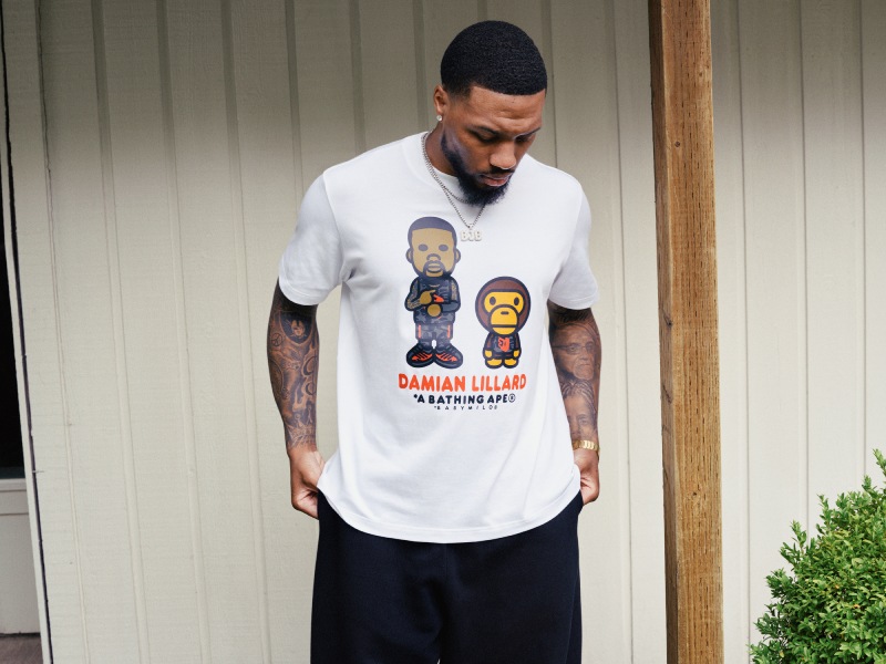 Para su próxima unión, la colabo germano-japonesa toma como base la silueta signature del astro de los Milwaukee Bucks Damian Lillard. Su zapatilla actual, la Dame 9, es el modelo más ligero y puntero de la línea y ahora se ha puesto muchísimo más cool. Y para acompañar este lanzamiento, tenemos una equipación con branding conjunto de Lillard, adidas y BAPE y la icónica camiseta del jugador acompañado de Baby Milo.