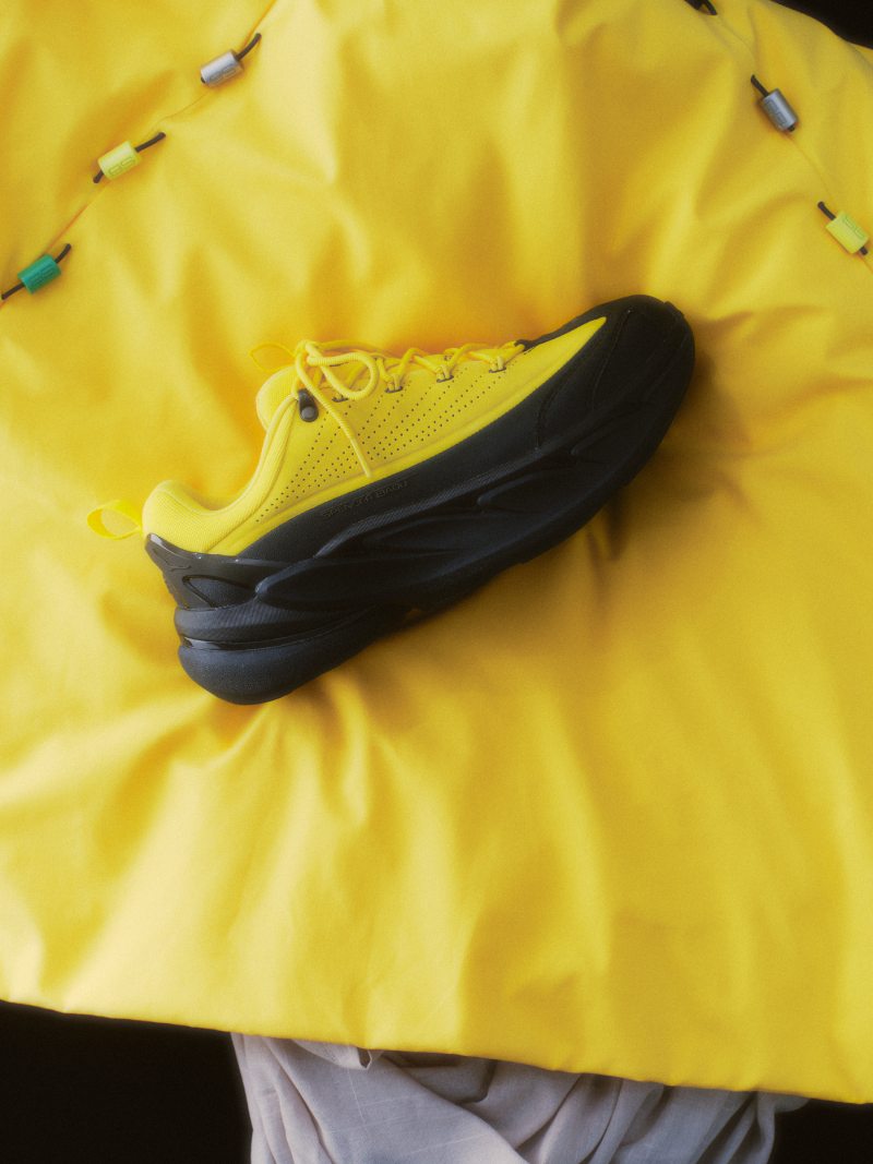La versión colaborativa de las Elevon X de Hoka X Spencer Badu reinterpretan la fórmula original de la silueta con toques de su propio lenguaje ultra elevado y curado que estilizan el upper y acercan más el modelo a una silueta del high street. Y bueno, también está el colorway amarillo canario, que es una maravilla