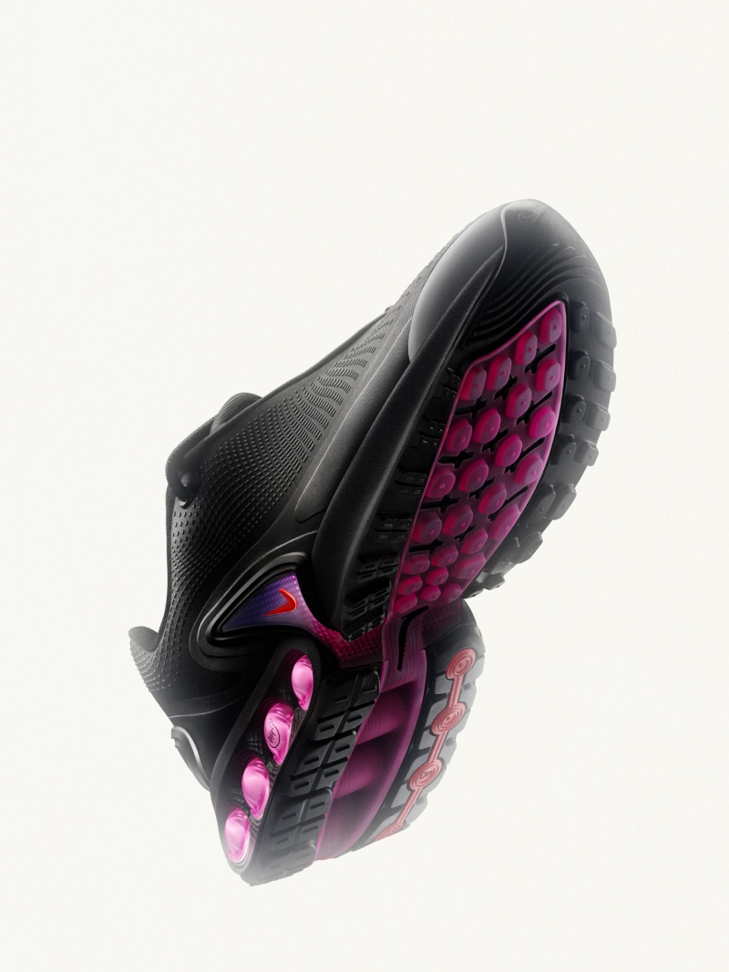 Nike estrena su nueva tecnología de amortiguación por aire de la mano de una nueva silueta de la familia Air Max. Las nuevas Nike Air Max Dn rescatan, en términos de diseño, todo el ADN de su pedigrí, pero lo encaminan a un futuro más prometedor y avanzado. Para este primer lanzamiento, la firma del Swoosh las presenta en un colorway negro que se acentúa con magentas y tonos rosados.
