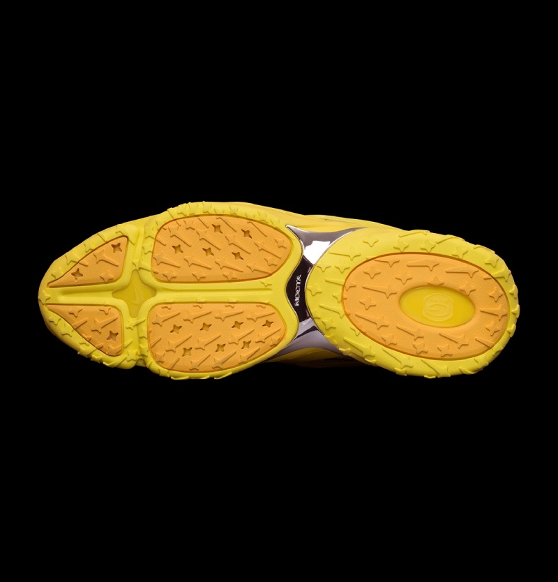 En cuanto a su construcción, estas nuevas Nike Nocta Hot Step 2 en amarillo presentan un cuerpo superior de cuero sintético. Detalles como una textura acanalada y una puntera de mesh se encargan de añadir dimensión y dinamismo a la silueta. Como siempre, tenemos un cage de malla con un pequeño swoosh metálico y una lengüeta acolchada, coronada por las tres estrellas de la línea colaborativa.