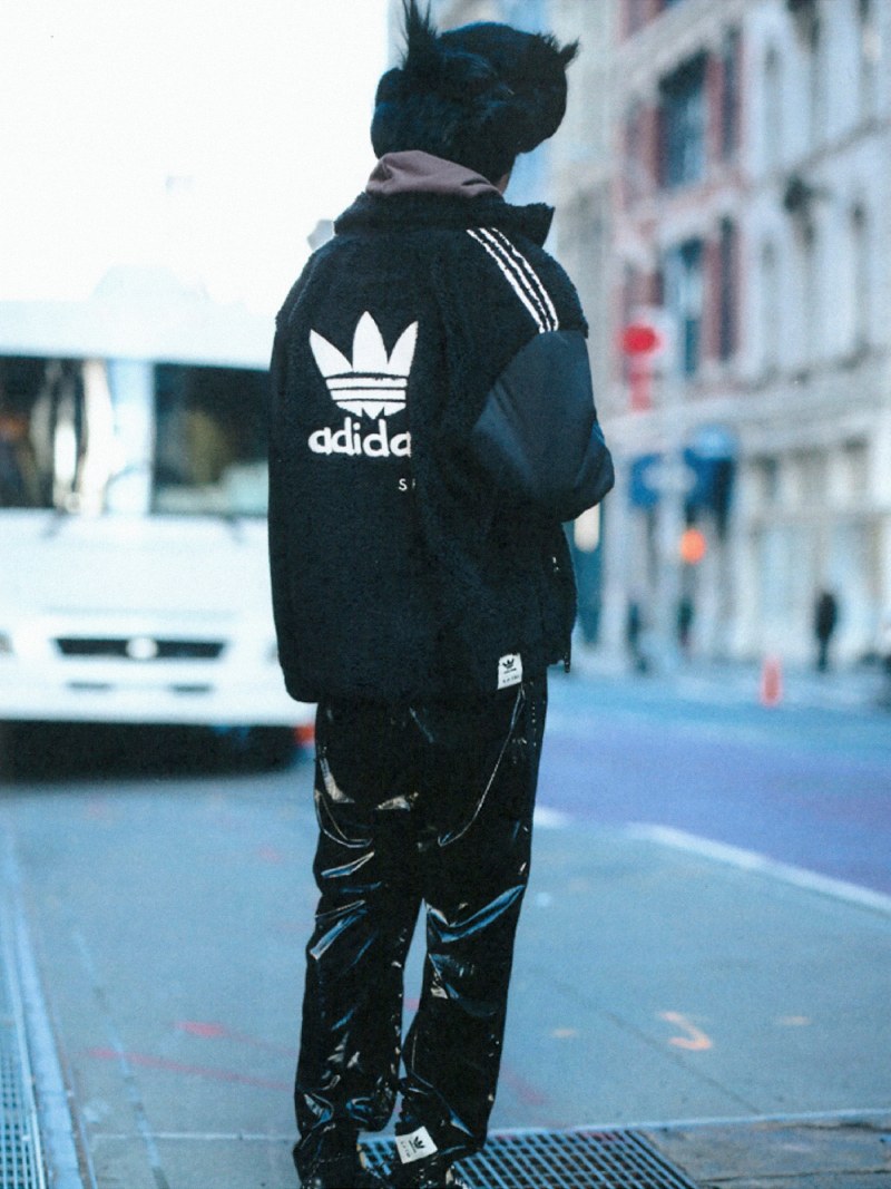 Acompañando estas nuevas versiones de la sneaker, adidas X Song For The Mute presenta un armario deportivo y muy condensado en la misma línea. La estrella de esta colección es un traje de vinilo compuesto por una americana cruzada oversize y un pantalón de chándal en negro.