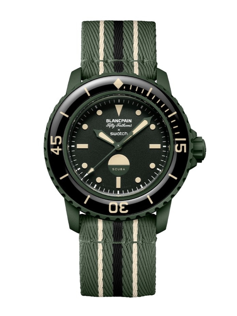 Swatch y Blancpain expanden su colección colaborativa del Bioceramic Scuba Fifty Fathoms con una nueva versión, ahora en verde oliva.
