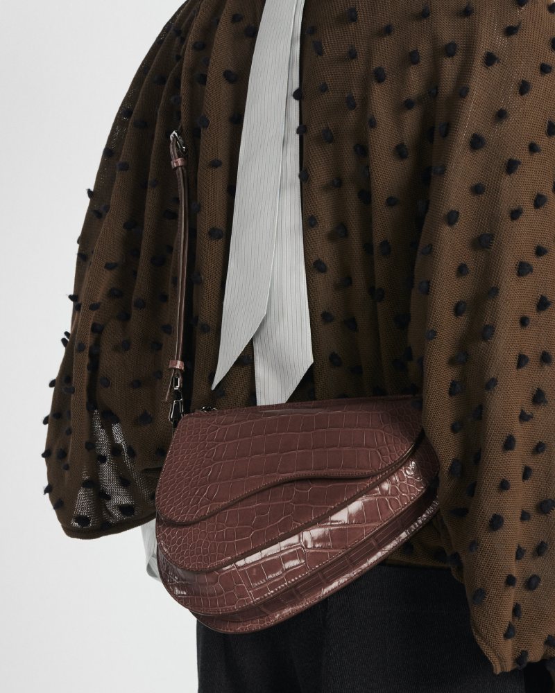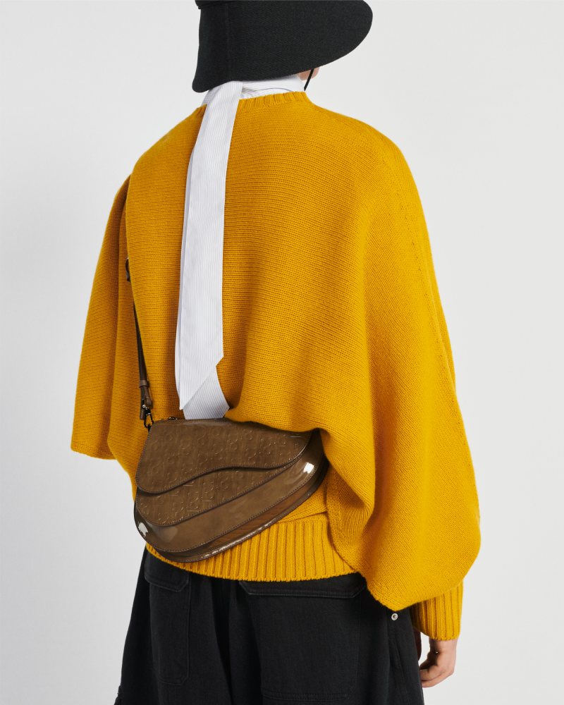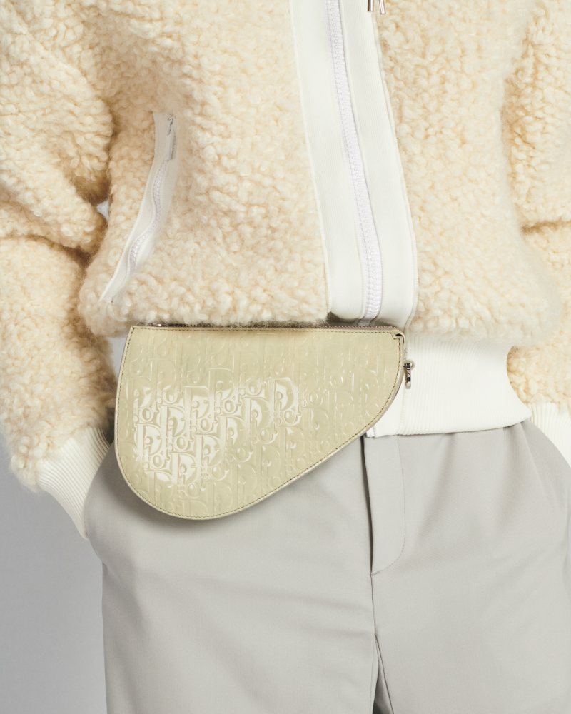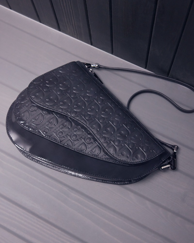 Ahora, el nuevo Dior Saddle Boxy toma como base la icónica silueta para convertirse en algo tan familiar como nuevo. La silueta se convierte ahora en una construcción escalonada donde un bolsillo frontal rescata la icónica solapa. Ahora, el bolsillo principal se encuentra arriba y se accede a él por medio de una cremallera superior. Esta nueva creación trae consigo un nuevo material para el léxico de la casa: la piel Dior Oblique Gravity. Este nuevo acabado presenta una piel acharolada con los motivos Oblique sublimados con calor, recodificando los códigos clásicos con un aire más contemporáneo.