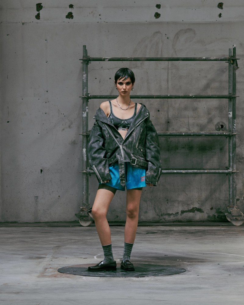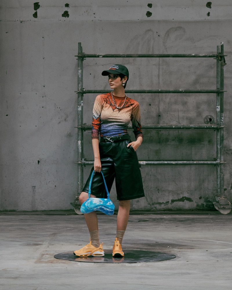 El menswear reinventado también está dentro de las tendencias streetwear de verano 2025. Aquí, oxfords de Come des Garçons Shirt no hacen solo de camisas, hacen también de faldas para un look de mix and match de estampados. La biker de toda la vida también vuelve, ahora oversize y sobre un top vaquero Diesel estilo bralette. ¿Qué hay de sneakers? Pura nostalgia con siluetas como las Air Max Craze en naranja o las adidas Originals Predator Megaride en azul metálico. También hay lugar para lo clásico con mocasines Sebago en colores statement.