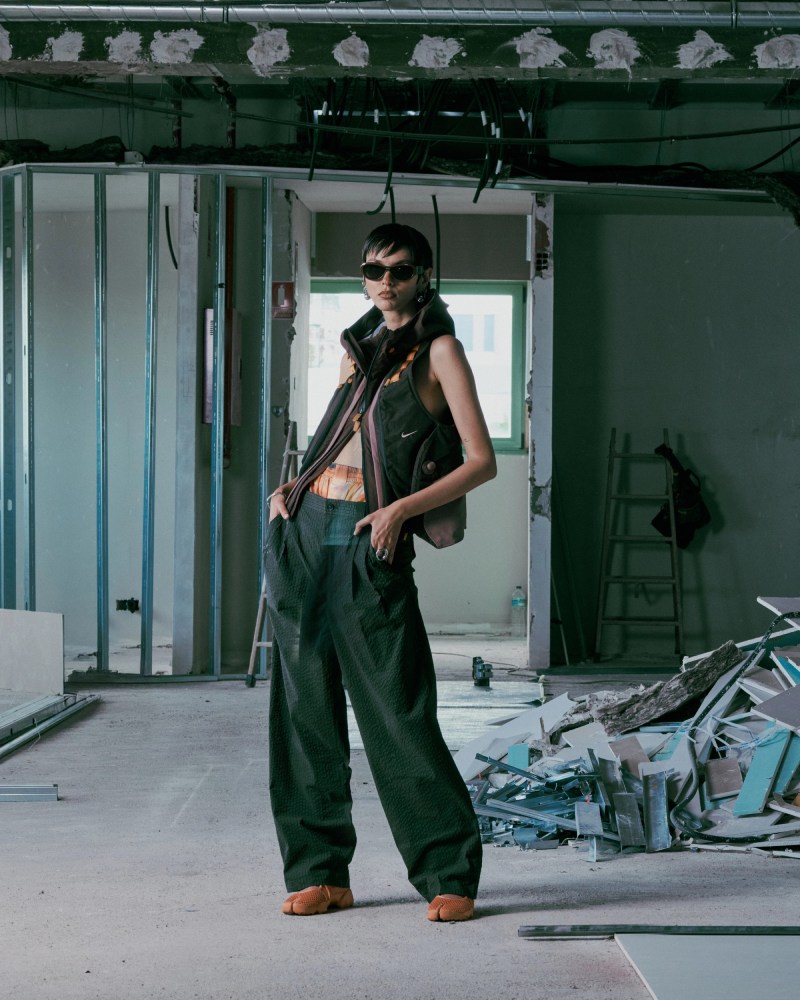 Beta. Styles in Transition es un estudio de proceso en toda regla. Este nuevo editorial del retailer explora la idea de ese punto medio entre la concepción de una idea y su culminación. Aquí, vemos cómo las cosas no están terminadas del todo; pero ya están en camino a ser. Esta idea puede traducirse a cualquier cosa; tanto así que el mismo fondo de las fotos es una oficina sin terminar (pero que ya se va viendo como una).