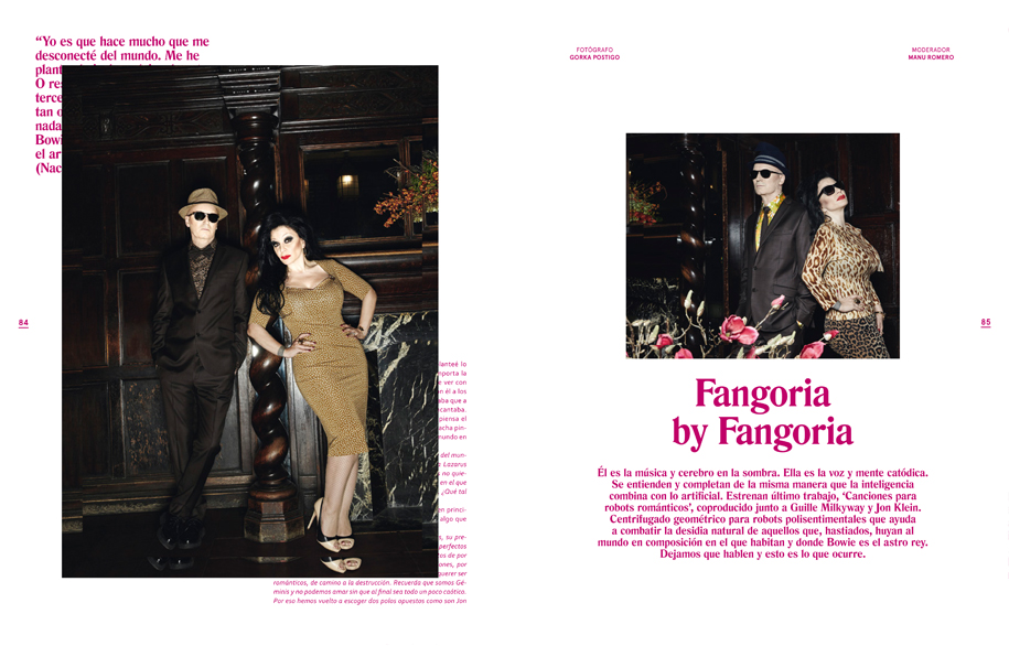 Otro personaje que conseguimos traer a las páginas de este número es Berto Romero, ese artista que te hace saltar las lagrimas, de risa, a ver por lo qué dice, pero sobre todo por cómo lo dice. Pues aquí le tenemos con motivo de su nuevo estreno cinematográfico. Y como no podía ser de otra forma, Fangoria vuelve a nuestras páginas gracias a su nuevo disco. En esta ocasión, no hay entrevista, sino una conversación entre Nacho y Alaska, totalmente descontextualiza que es lo que se estila ahora.