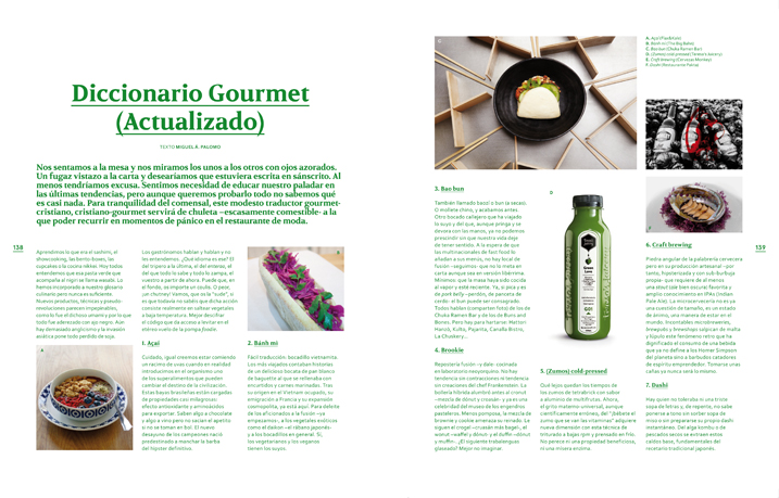 Nuevo Número de Neo2Nuevo Número de Neo2Para diletantes gastronómicos hemos elaborado un diccionario  gourmet actualizado con toda la terminología imprescindible del momento, muy útil para familiarizarte con toda aquello que te vas a echar a la boca en cualquiera de los restaurantes de los que todo el mundo habla, sino también para tirarte el pisto de vez en cuando, cosa que a todos nos gusta de vez en cuando. Esperemos que lo digieras bien (en caso de urgencia lo podrás consultar también en la versión tablet de Neo2).