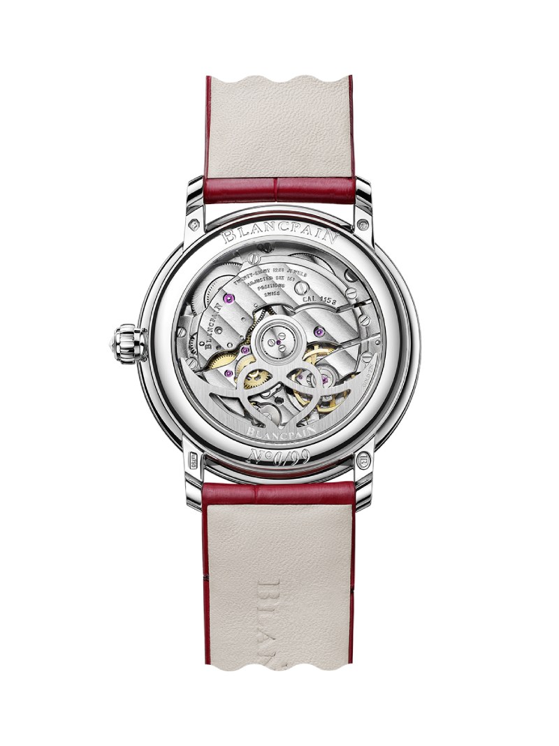 Rematando esta edición de San Valentín, este nuevo Ladybird Colors presenta una aguja de segundos inspirada en la flecha de cupido que atraviesa un pequeño corazón. A juego con esto, el nuevo Blancpain Lady Bird Colors de San Valentín se acompaña de una correa de piel de cocodrilo en rojo, fiel a los modelos clásicos de la línea.