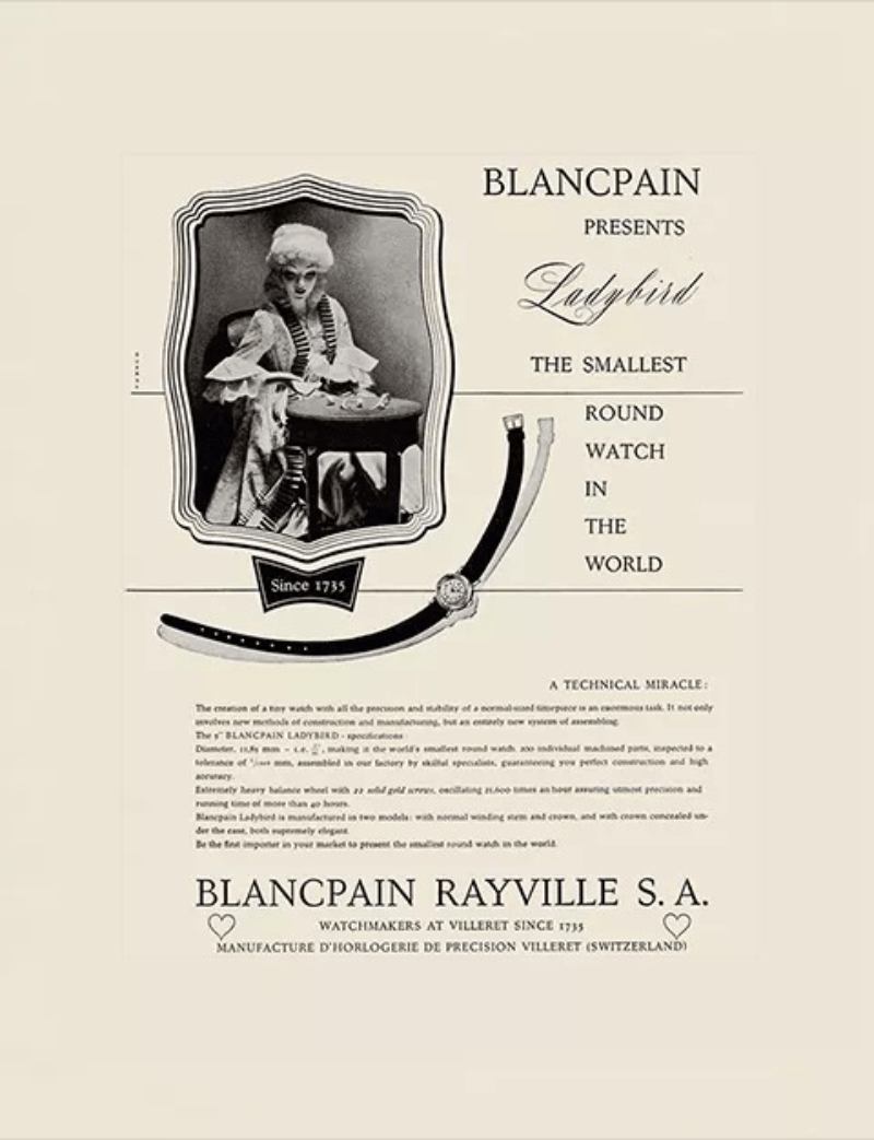 Cartel publicitario del modelo original del modelo Ladybird de Blancpain.