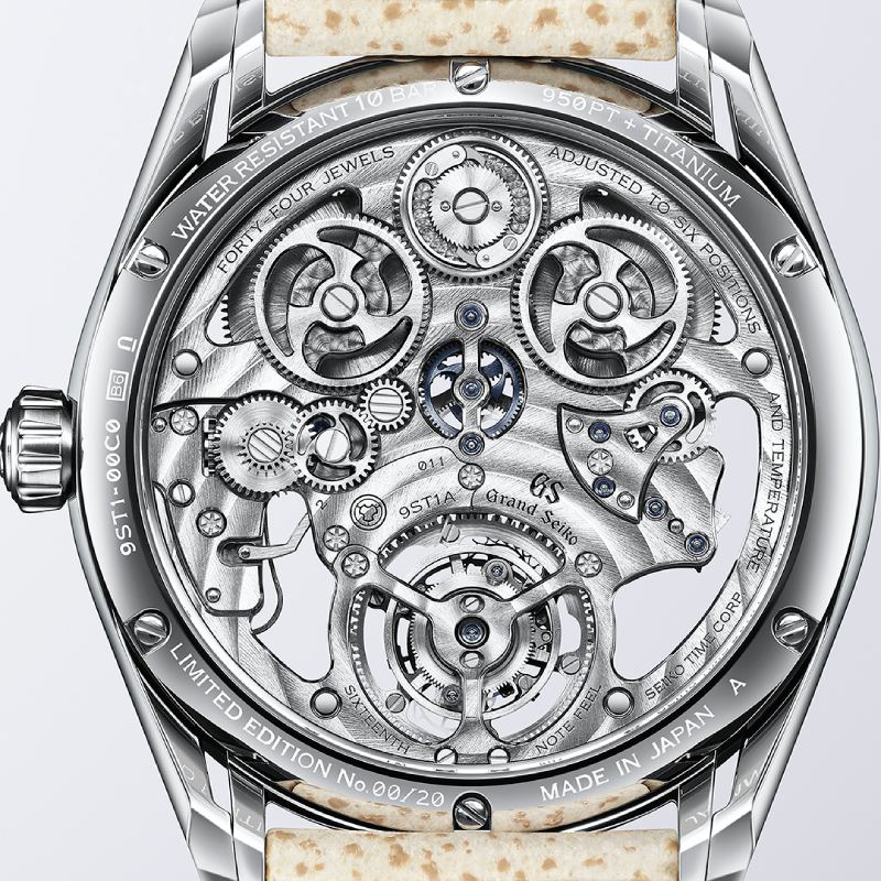 Los relojes Grand Seiko Kodo Constant Force Tourbillon son algunos de los relojes más espectaculares y complicados que firma la manufactura japonesa. En su interior, despojado de cualquier velo, vemos una construcción completamente openworked que deja ver el calibre 9ST1 de carga manual. Las funciones son lo único minimalista de la pieza: horas, minutos y estabilización por tourbillon para la máxima precisión posible.