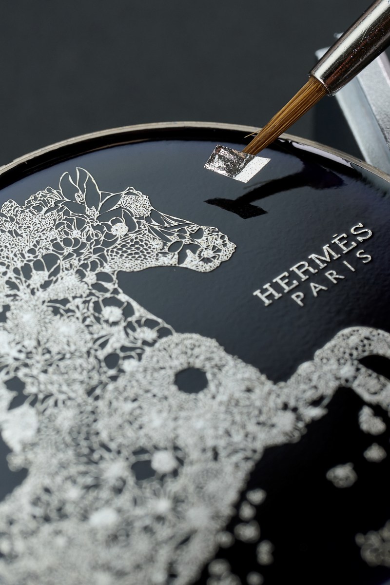 La otra pieza clave de la historia de la casa para entender este reloj es el icónico carré de Seda. Estos pañuelos estampados entraron al léxico de la casa en 1937 y, gracias a sus materiales exóticos y diseños llamativos, se convirtieron en un pilar de estilo en sí mismo. Y claro, con este otro lienzo, Hermès ha plasmado escenas de todo tipo de índoles; especialmente de motivos ecuestres para más INRI.